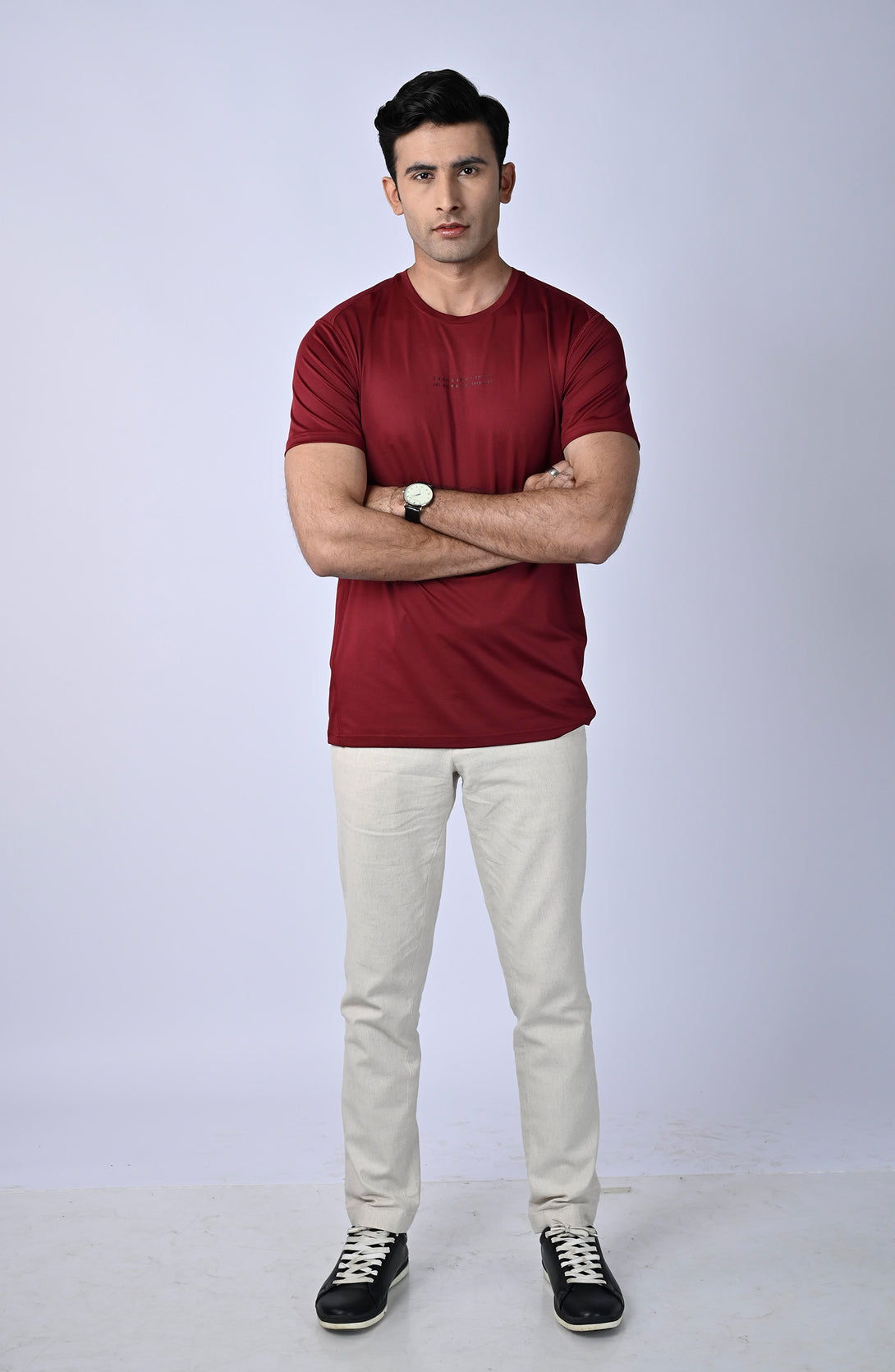 A smart-active fit tee exclusively designed for an athletic experience. This moisture wicking athleisure wear is crafted with polyester and spandex with high stretch, for comfort and ease in movement while working out.