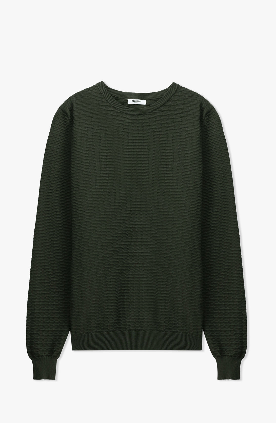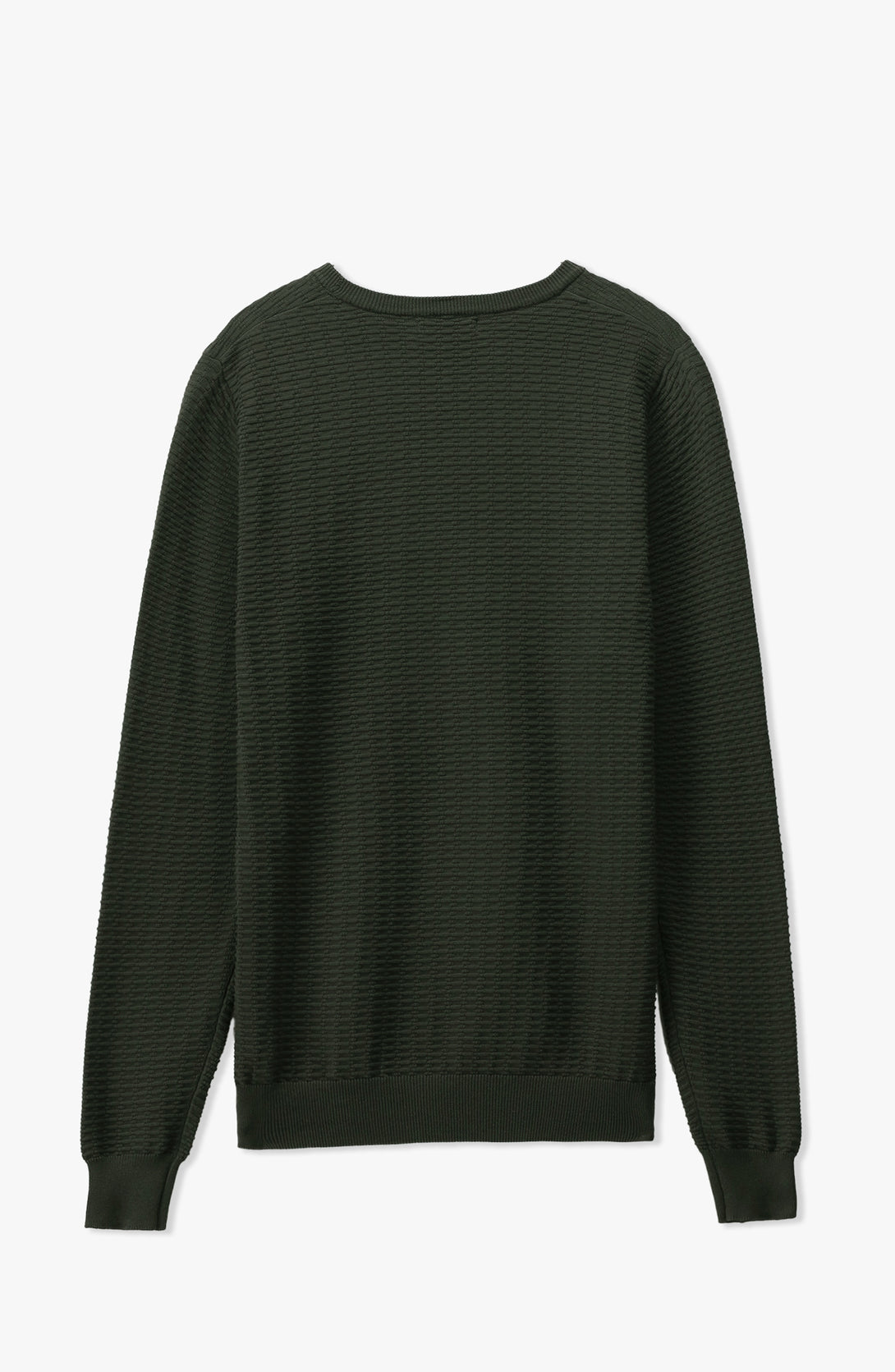 - Full sleeves with ribbed crew neck, cuffs, and hem