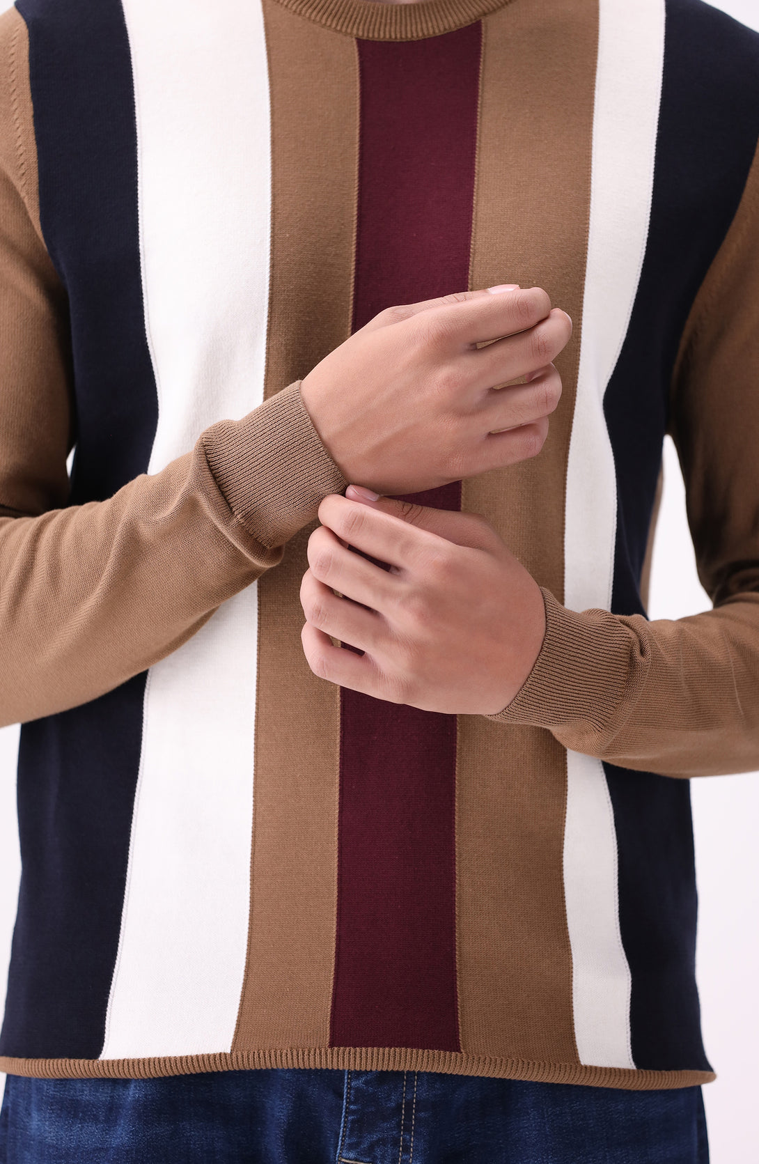 Introducing our most comfortable cotton sweater, featuring classic stripes and crafted for casual elegance. This design includes full sleeves and a regular fit, ensuring both comfort and style. Made from high-quality cotton, the sweater provides breathability and a soft touch, while the crew collar adds a sophisticated element, making it ideal for any casual occasion.