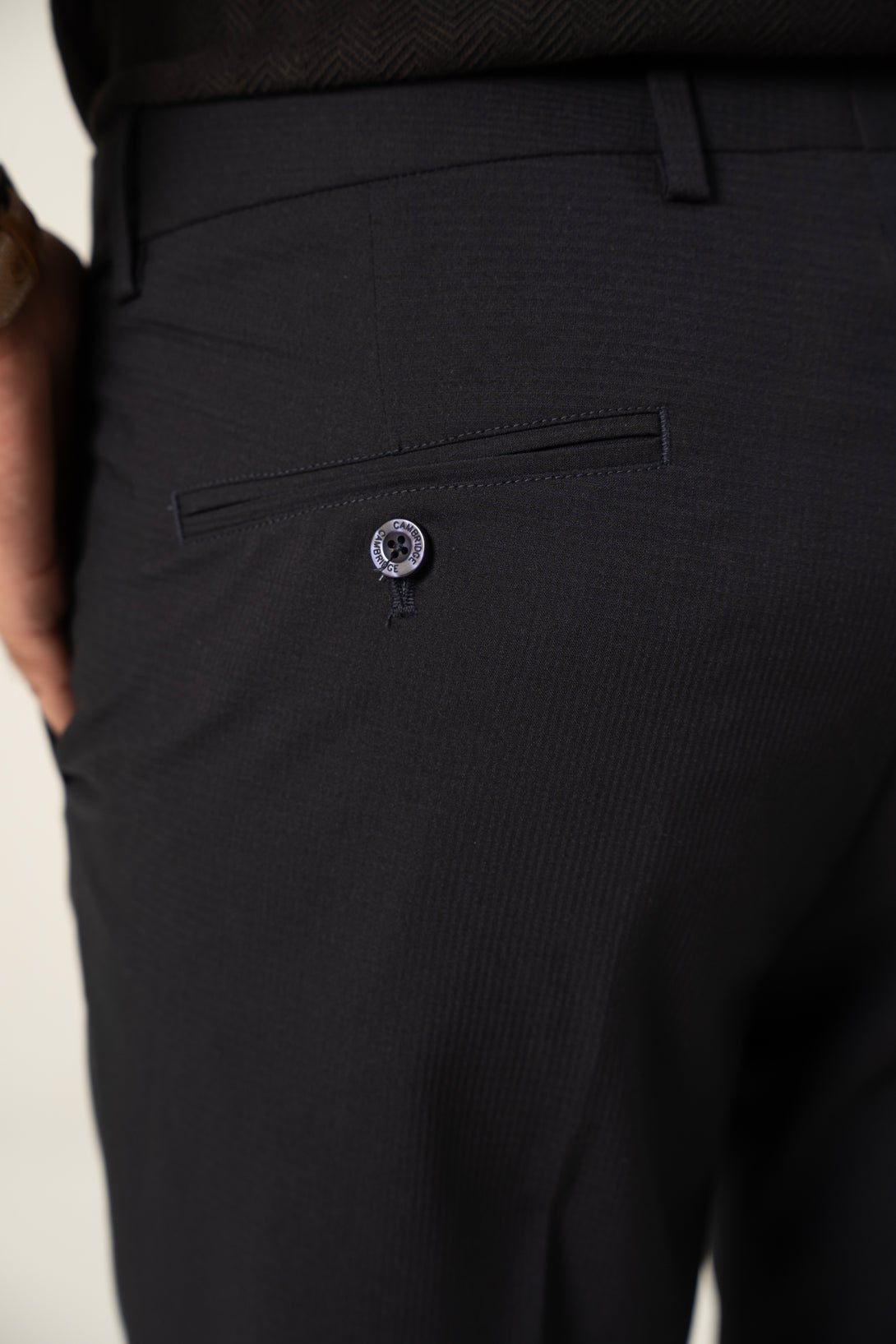 • Includes side pockets, back welt pockets, and hook fastening for a sharp finish