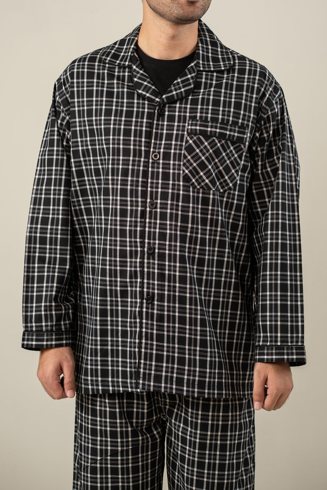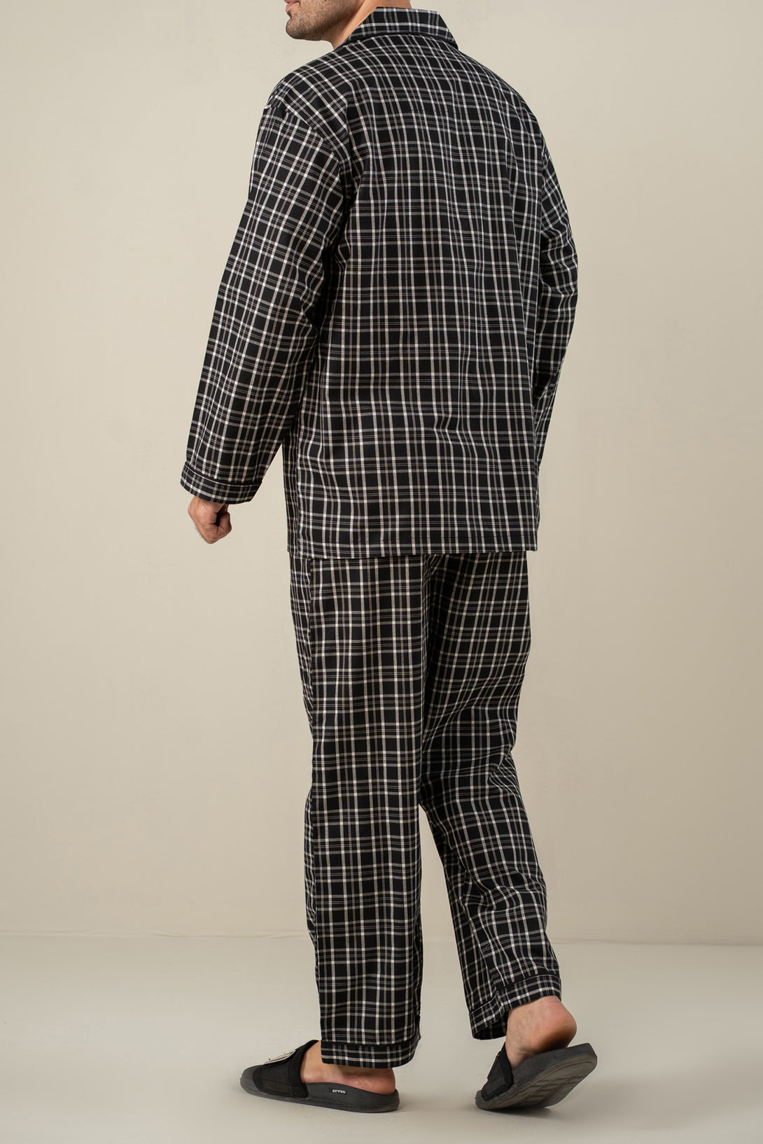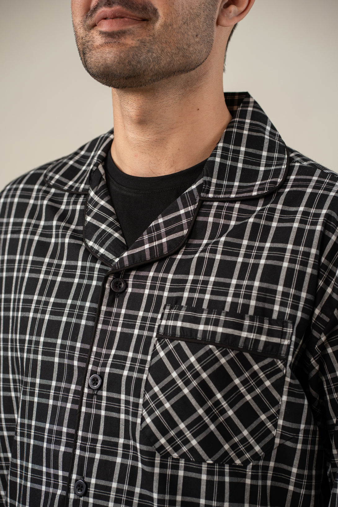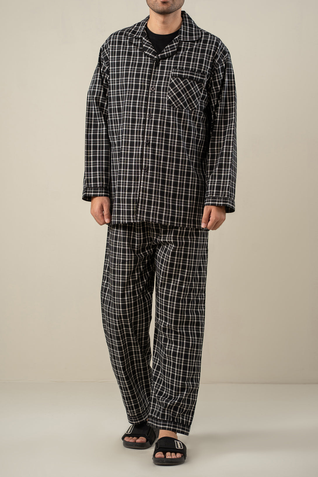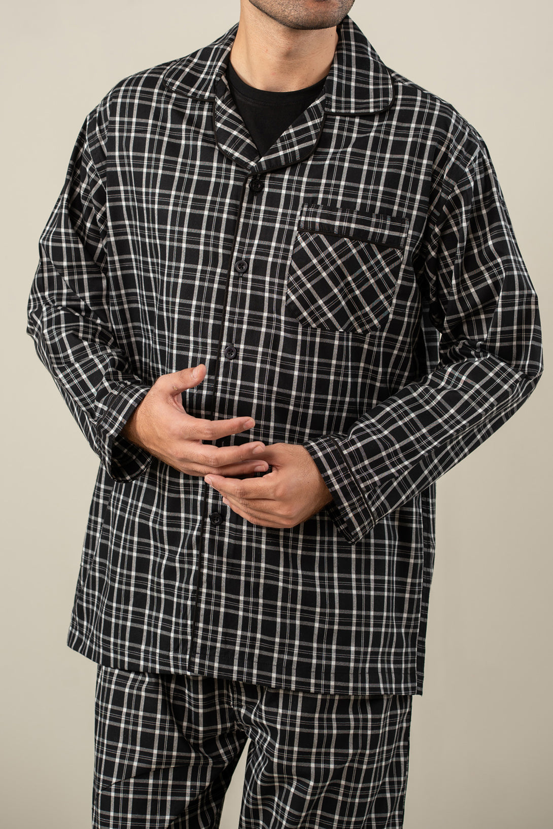 - Men's two-piece pajama set crafted from a soft cotton-poly blend for comfort and durability