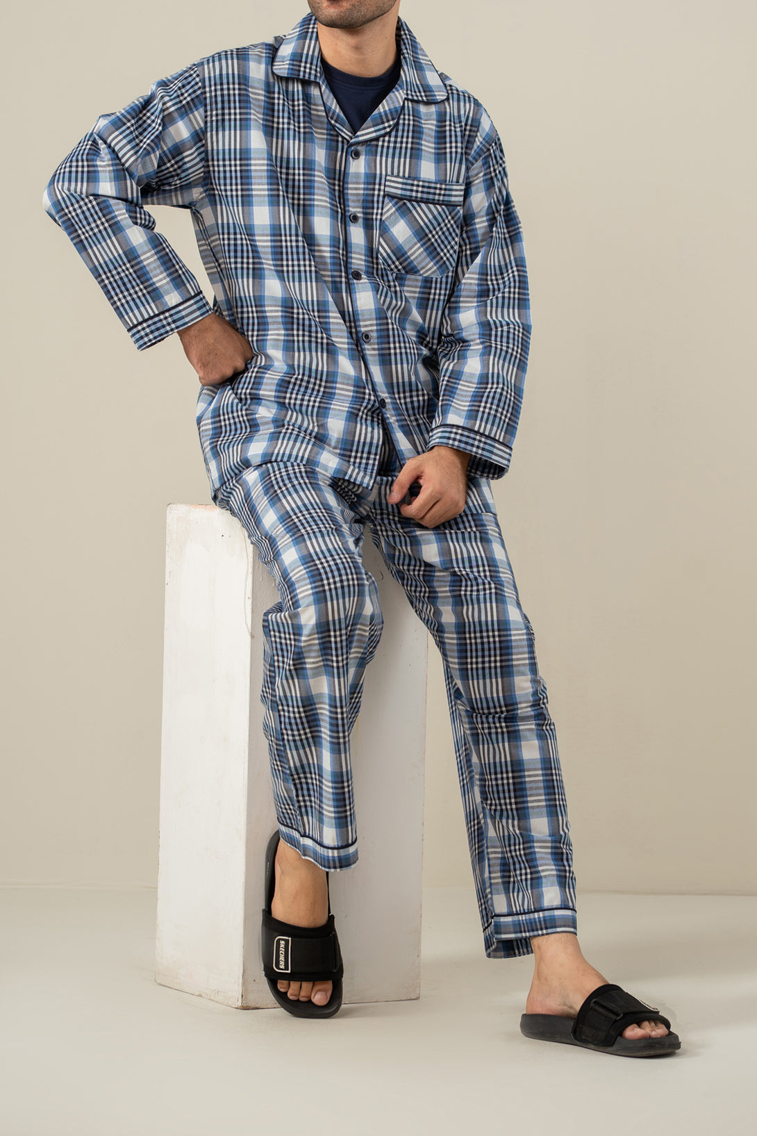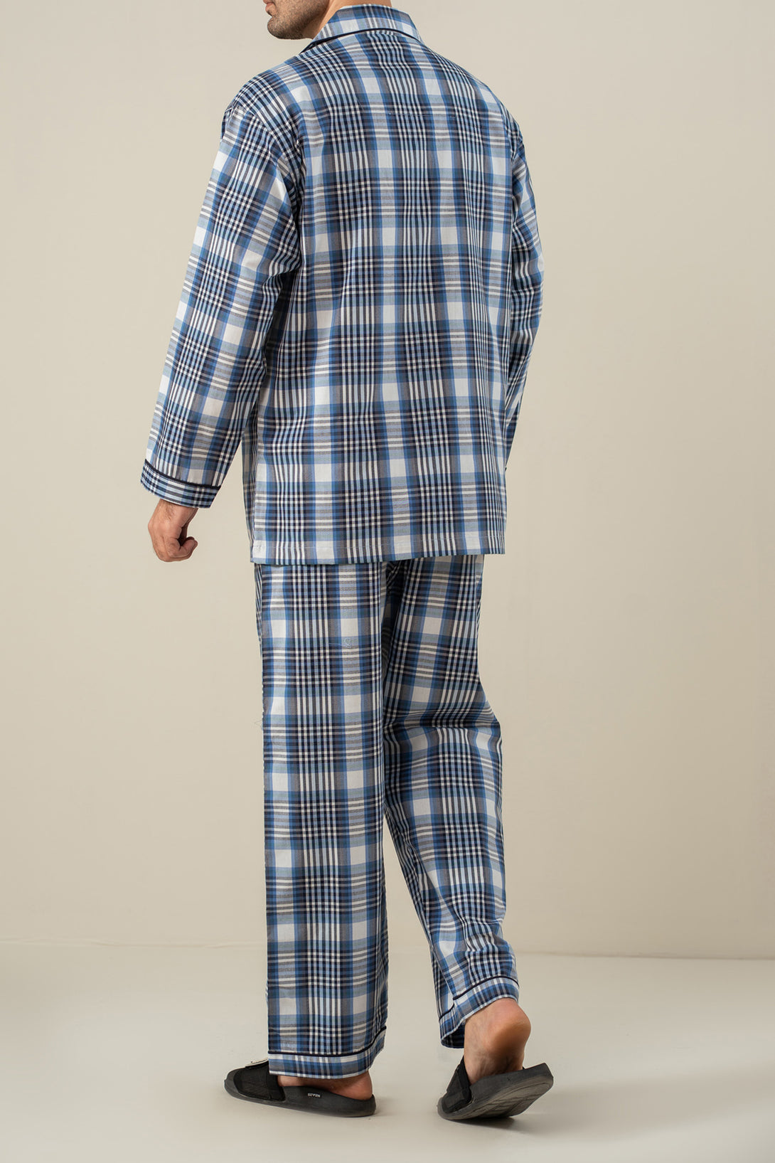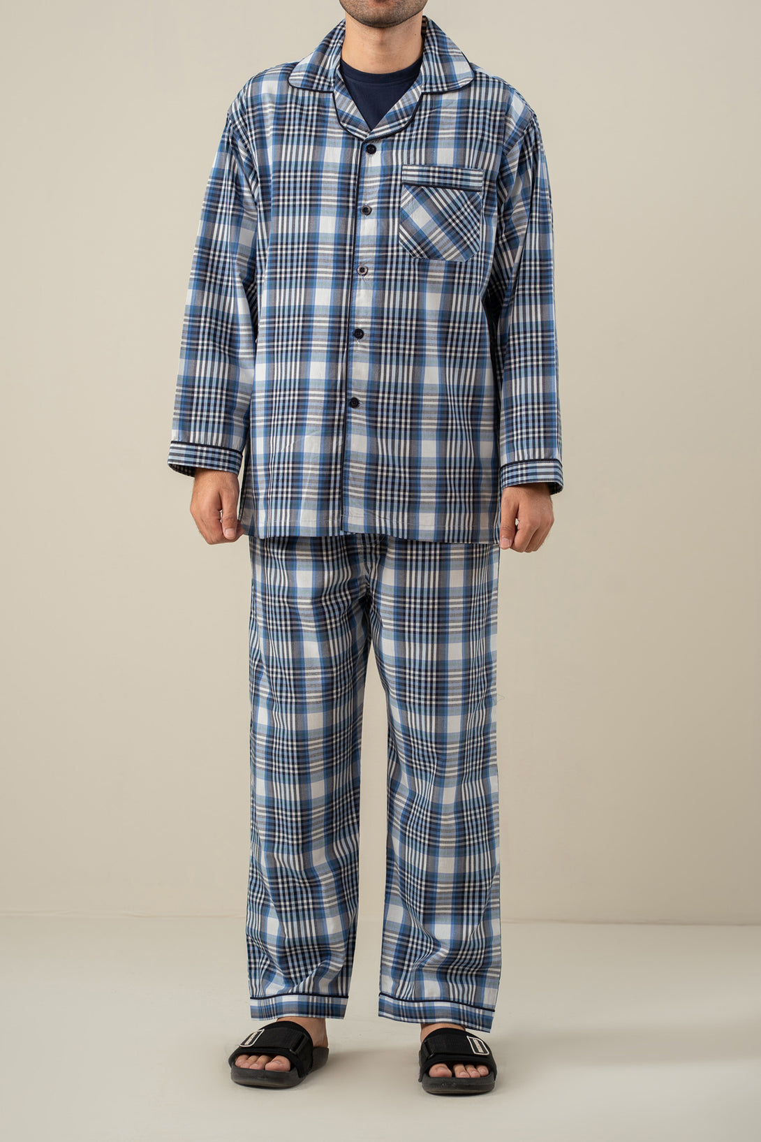 - Men's two-piece pajama set crafted from a soft cotton-poly blend for comfort and durability