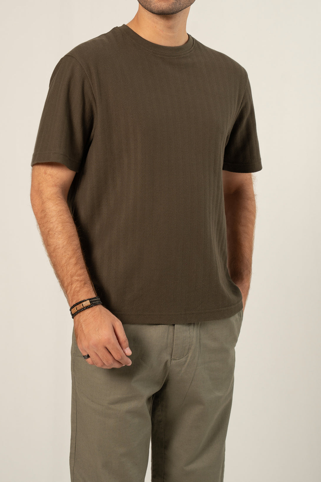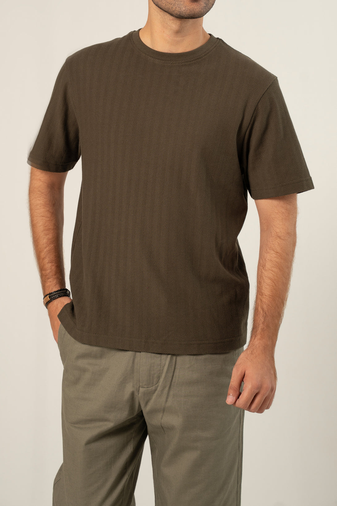 - Crafted from premium jacquard herringbone fabric