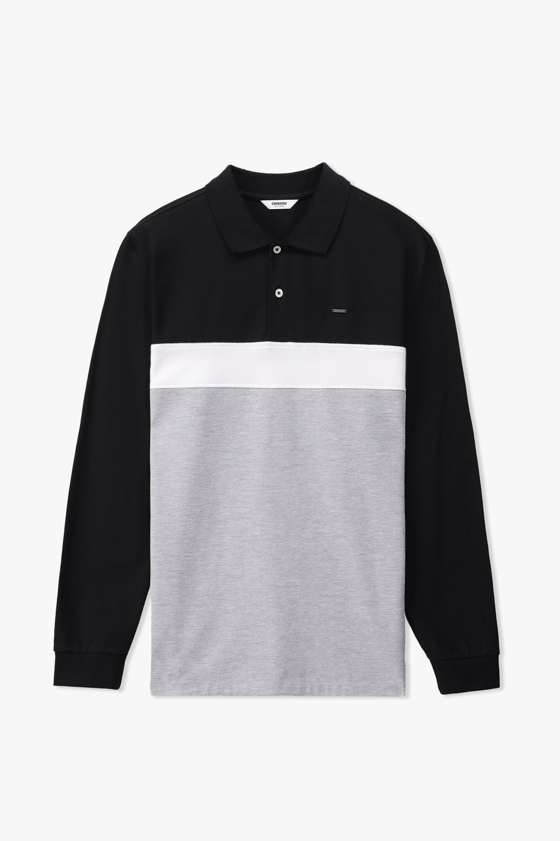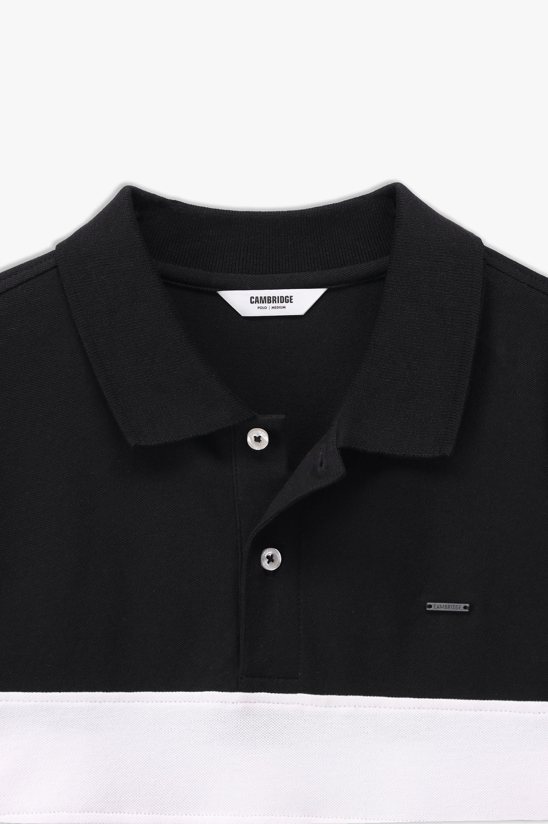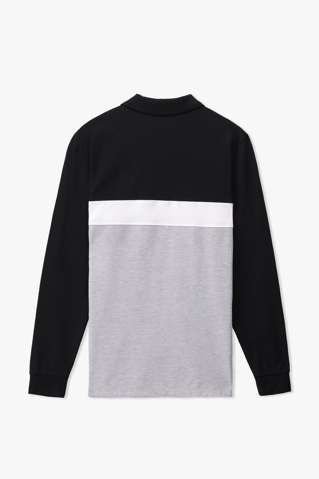 - Flat knit collar with cross polo design adds a modern, stylish touch