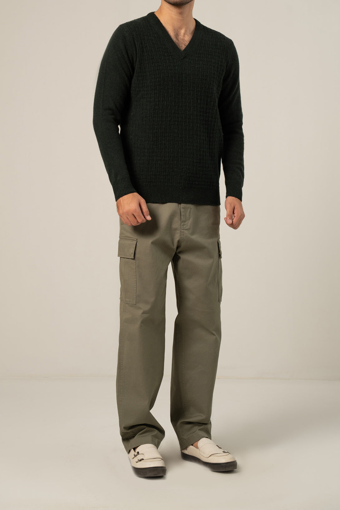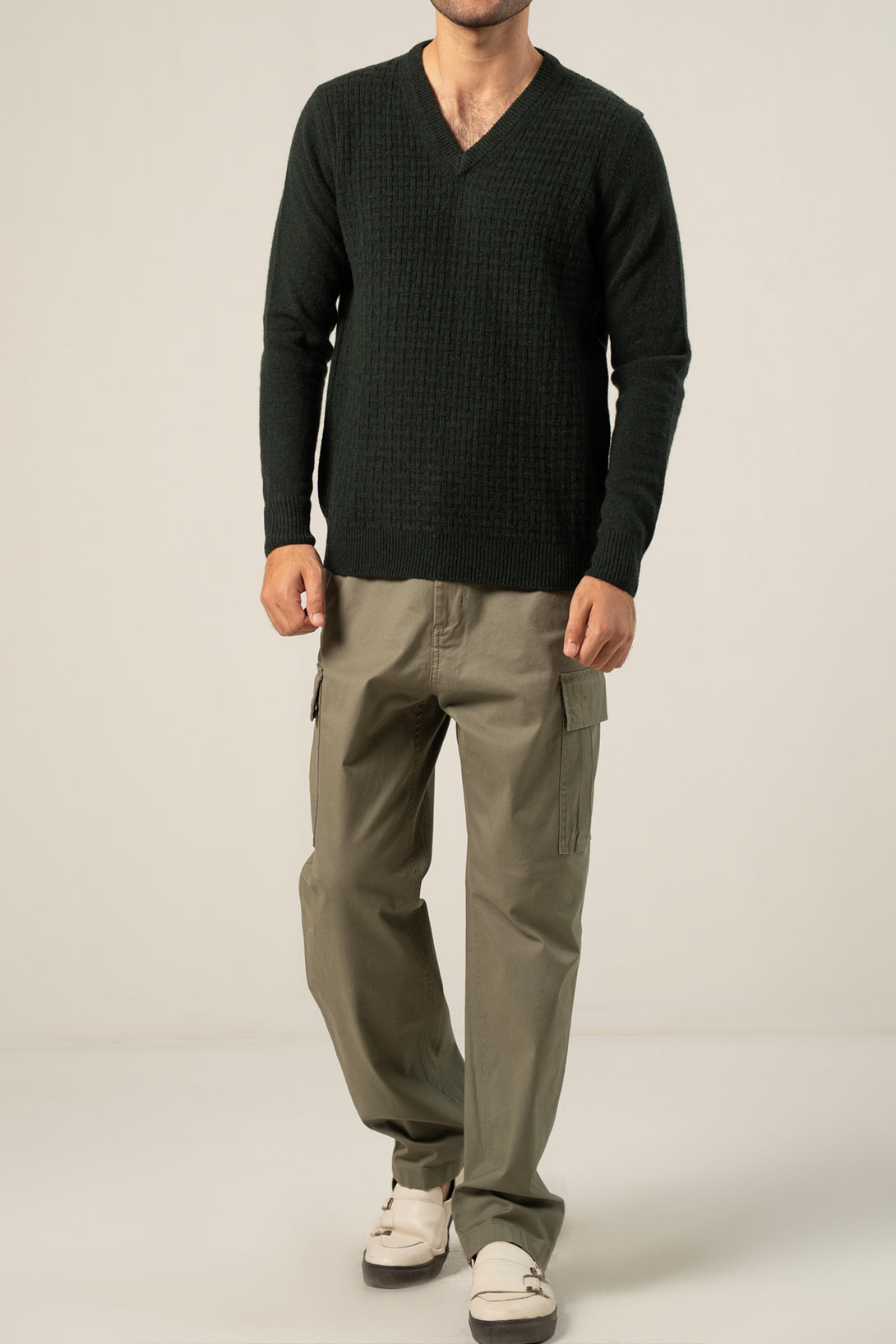 - Features a V-neckline and full sleeves