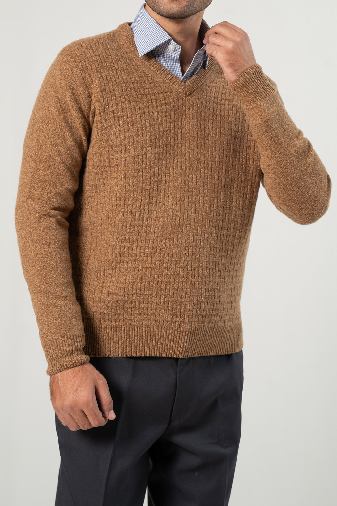 - Distinct textured knit enhances the refined look