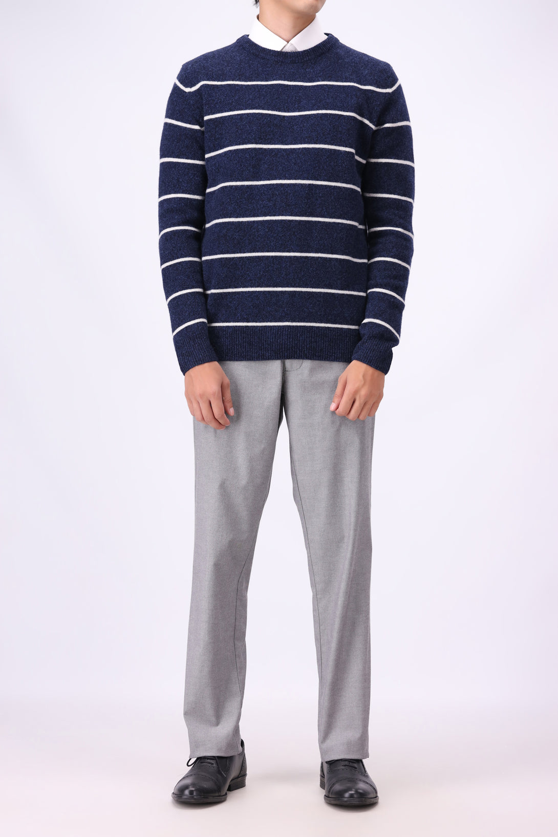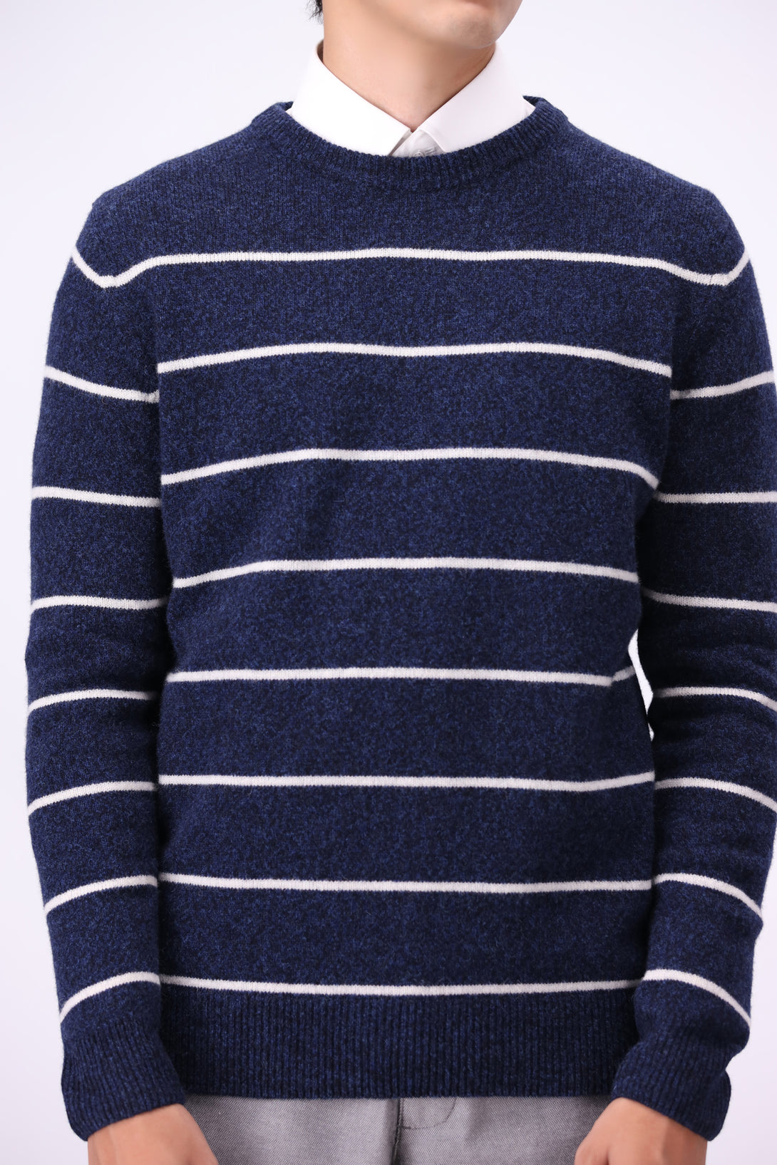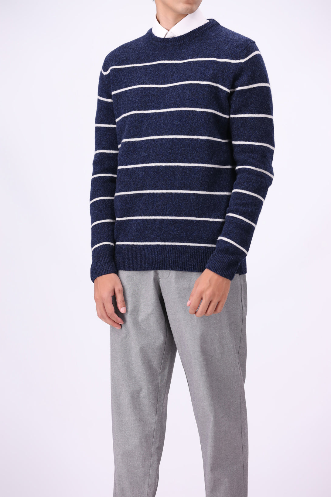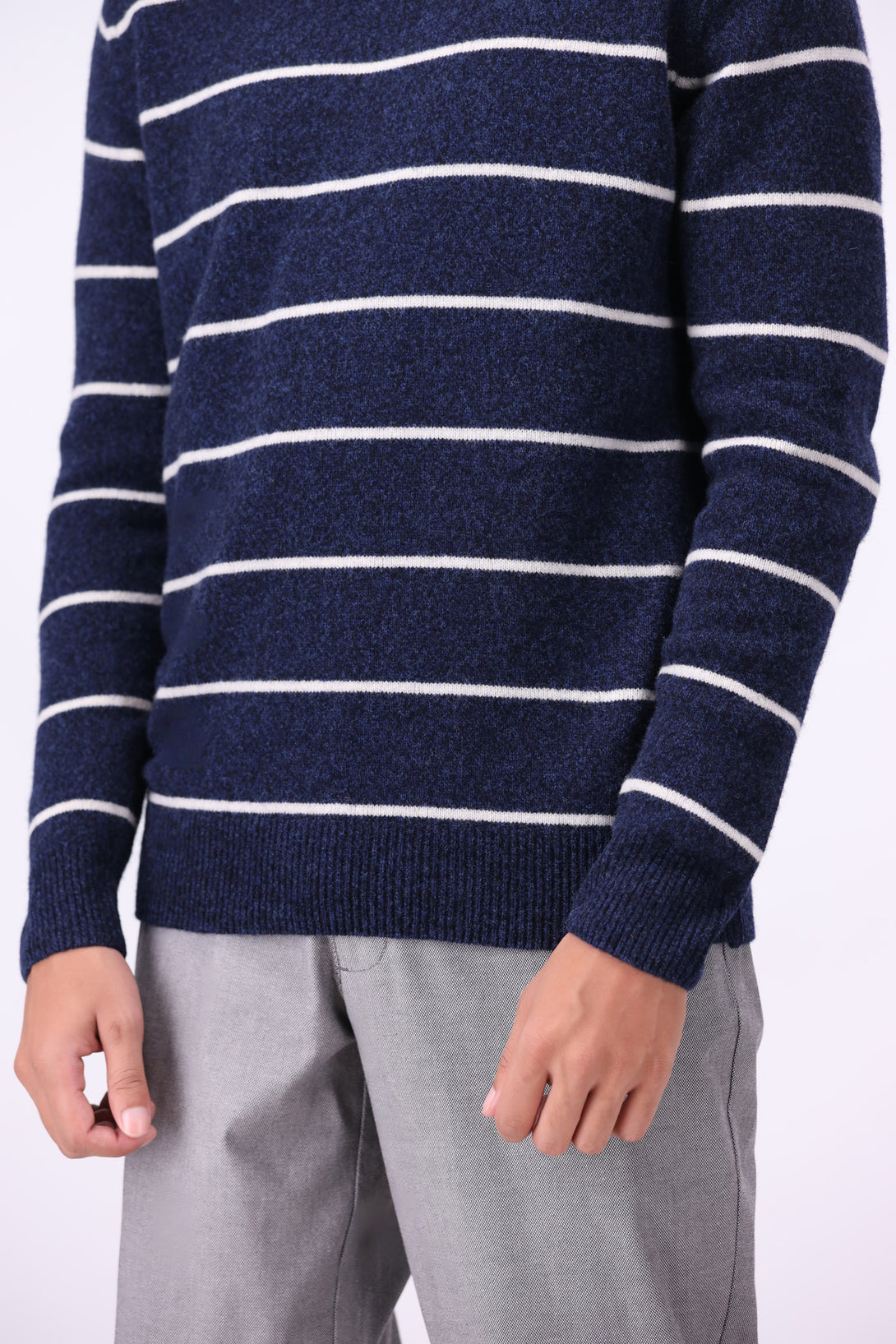 - Crew neck design with striped jersey pattern