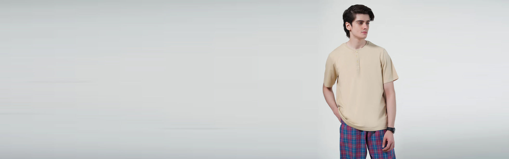 Woven pajama and knitted tees combine in this soft cotton pyjama set designed in a regular fit with a snug drawstring waist.