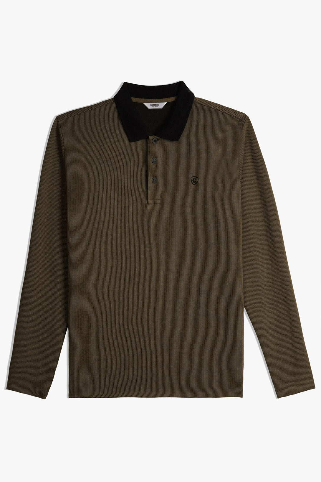 • Textured rib polo crafted from a soft cotton-poly blend for lasting comfort