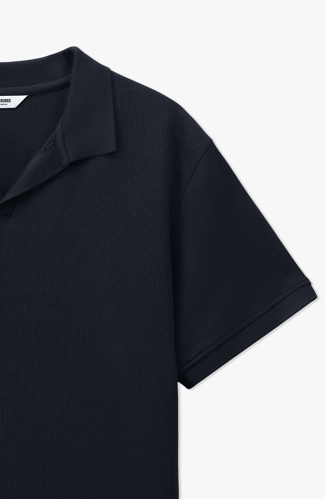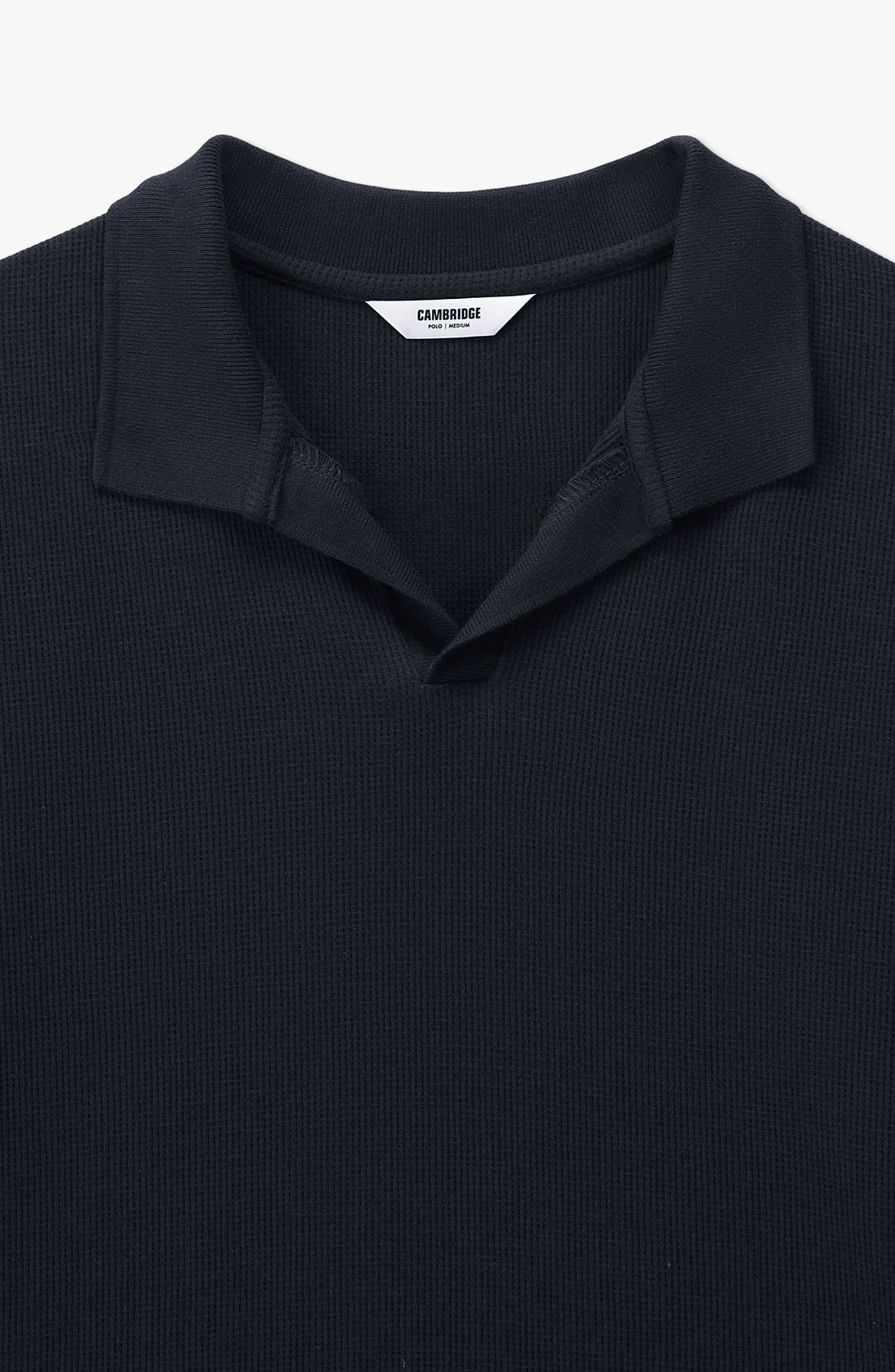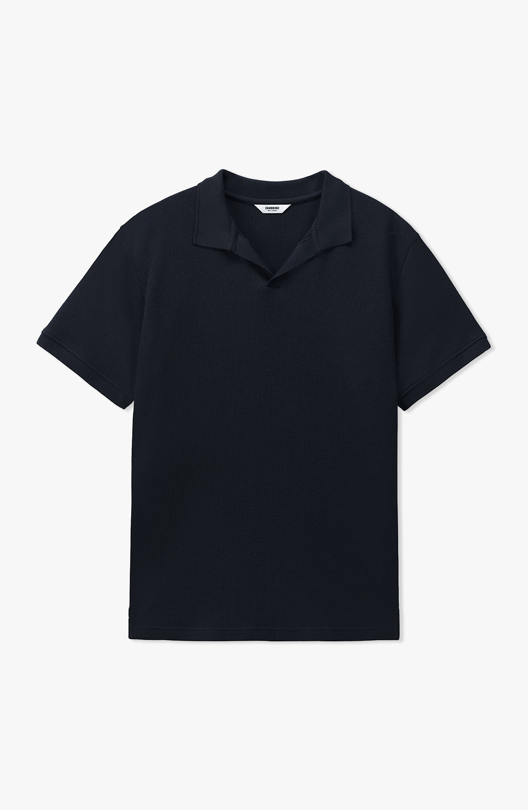 WAFFLE JOHNNY COLLAR POLO - BLACK