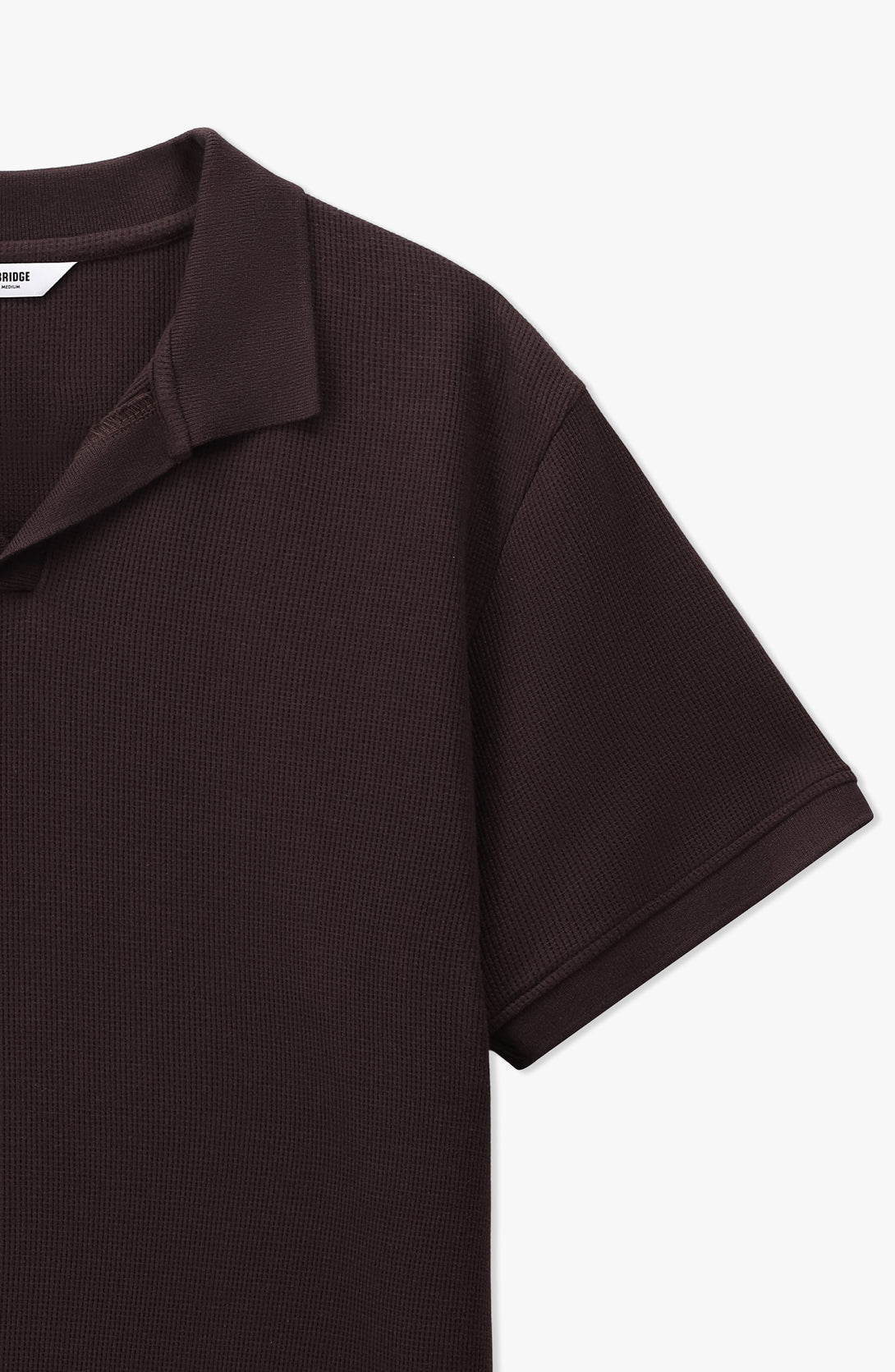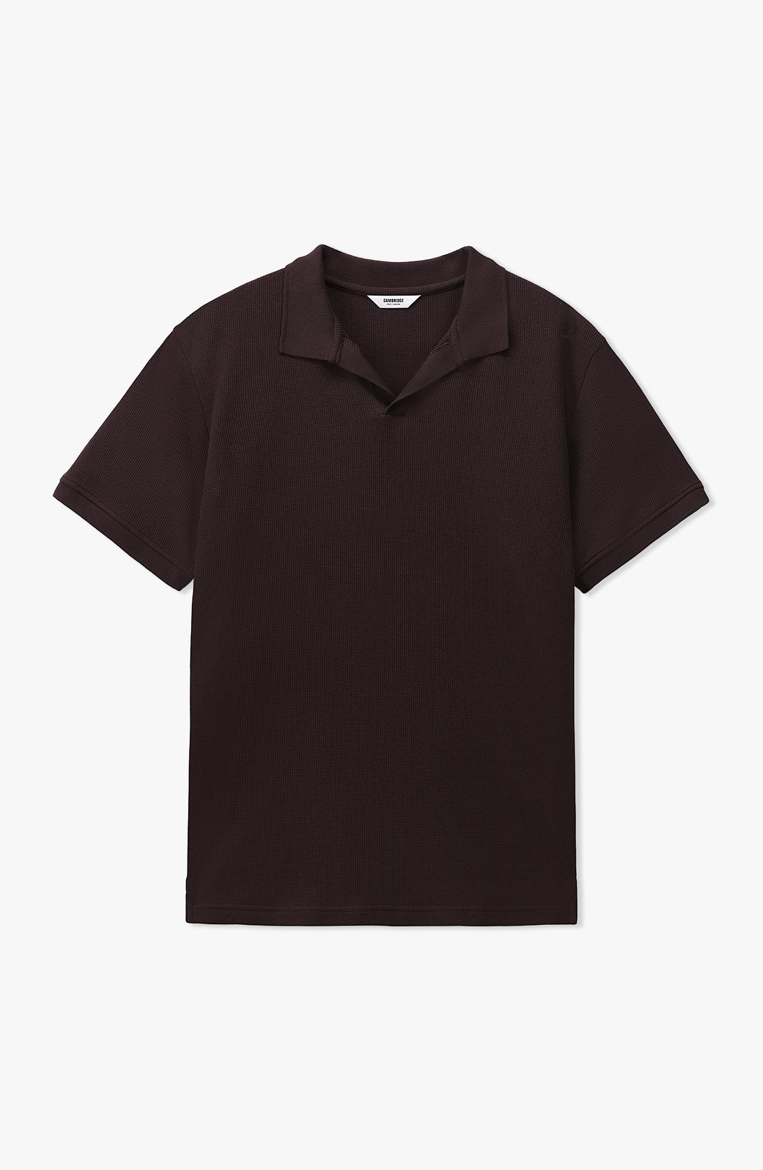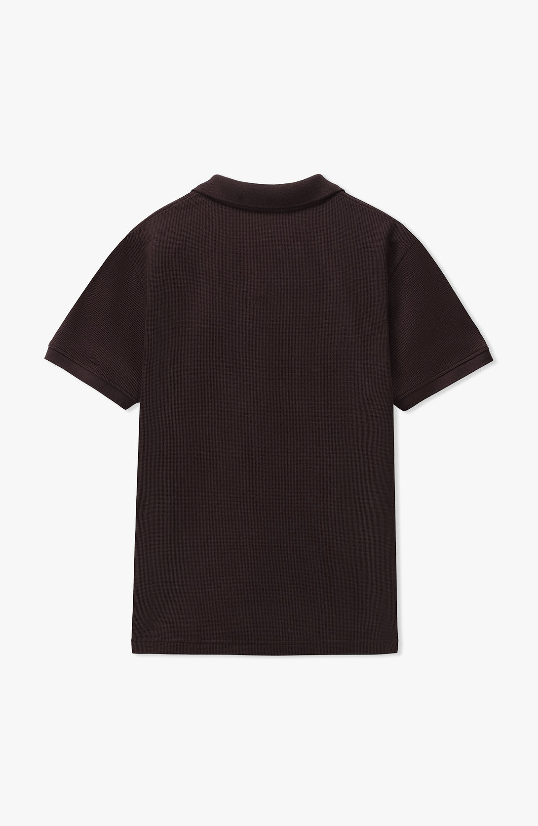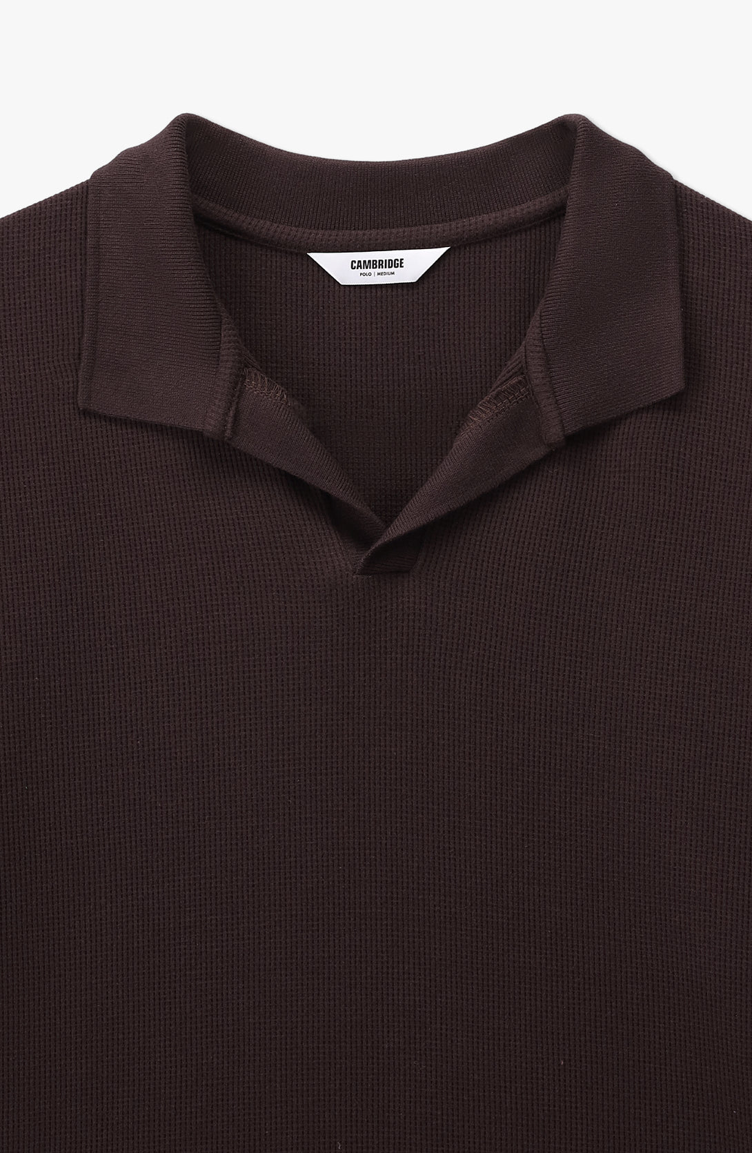 WAFFLE JOHNNY COLLAR POLO - DARK BROWN