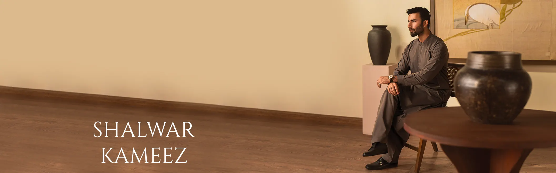 Discover a wide range of men's shalwar kameez in Pakistan. Our collection includes versatile designs, ensuring high quality and impeccable style. You can shop online or also visit our outlets across Pakistan including Karachi, Hyderabad, Lahore, Faisalabad, Islamabad, Rawalpindi, Peshawar and all major cities.