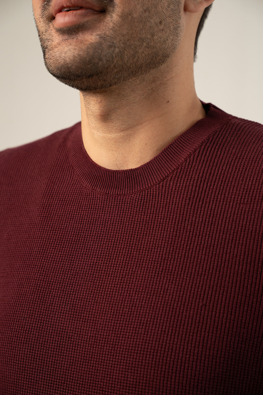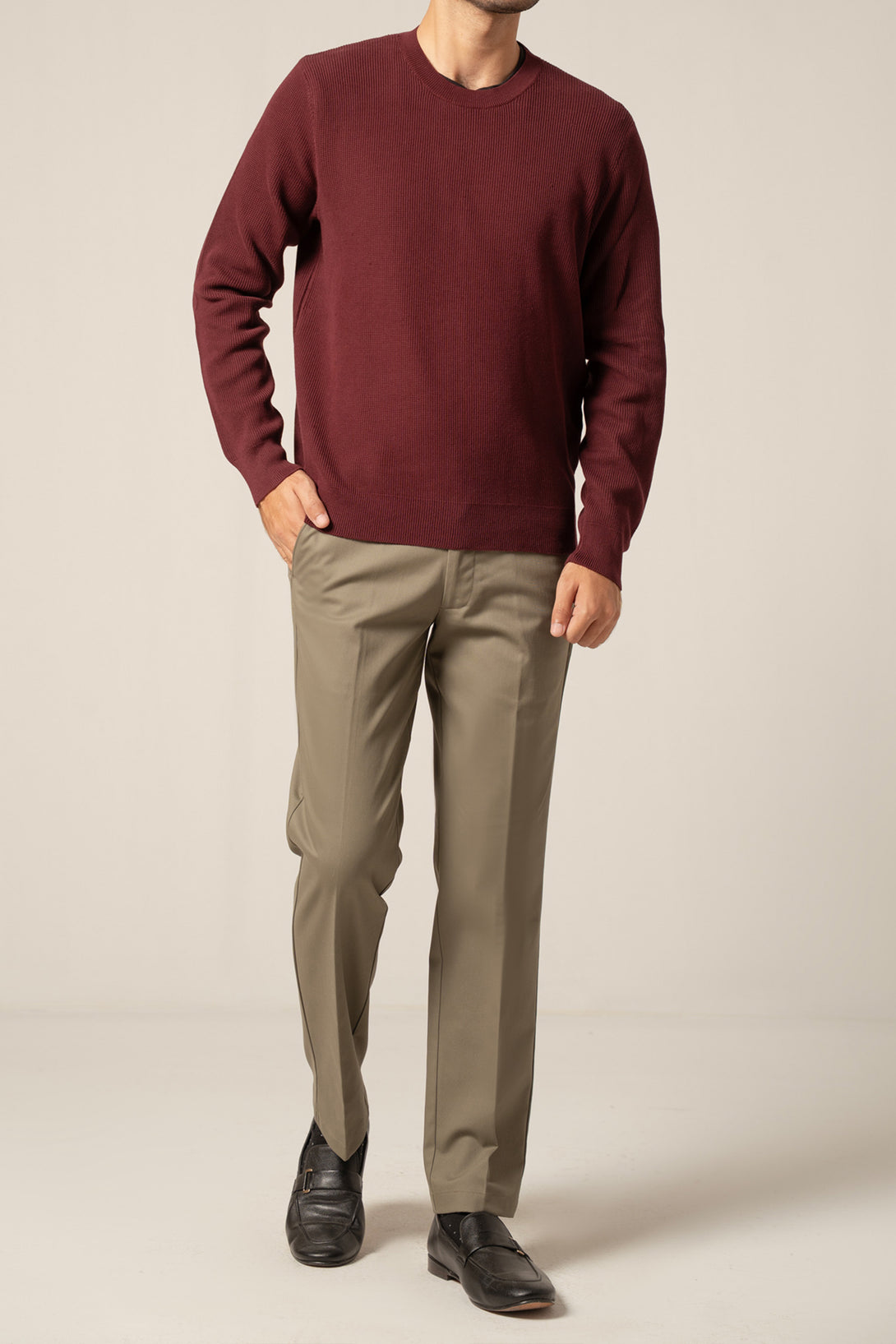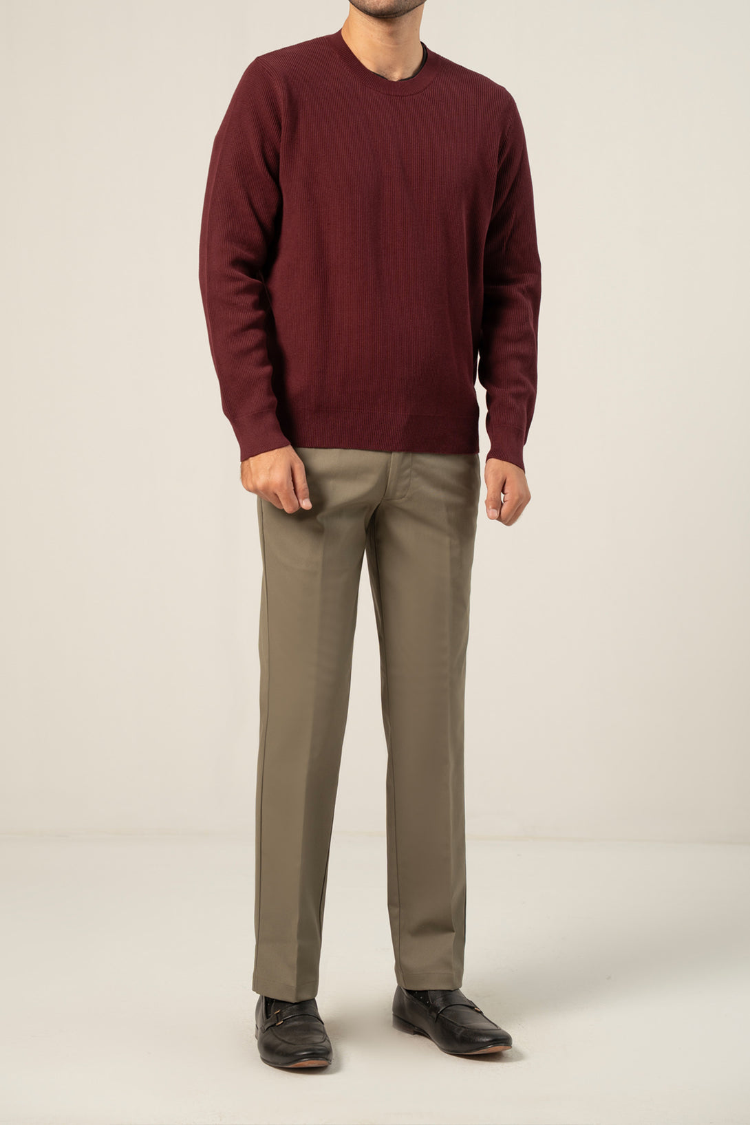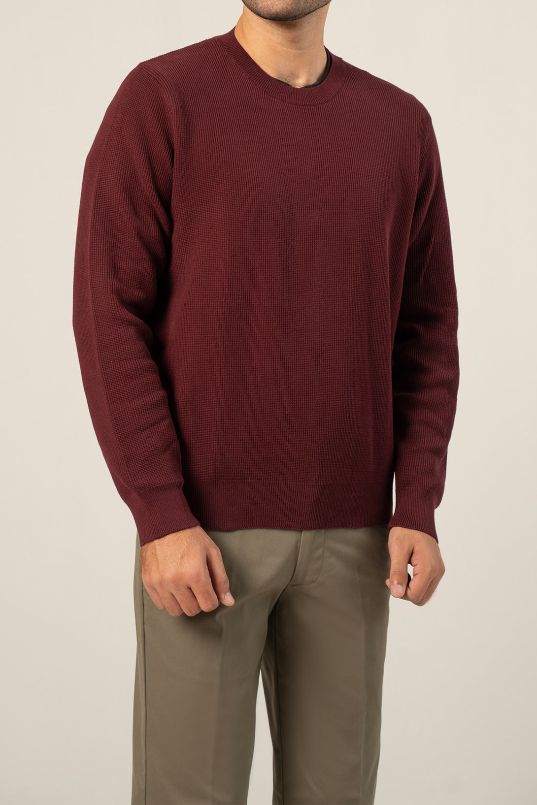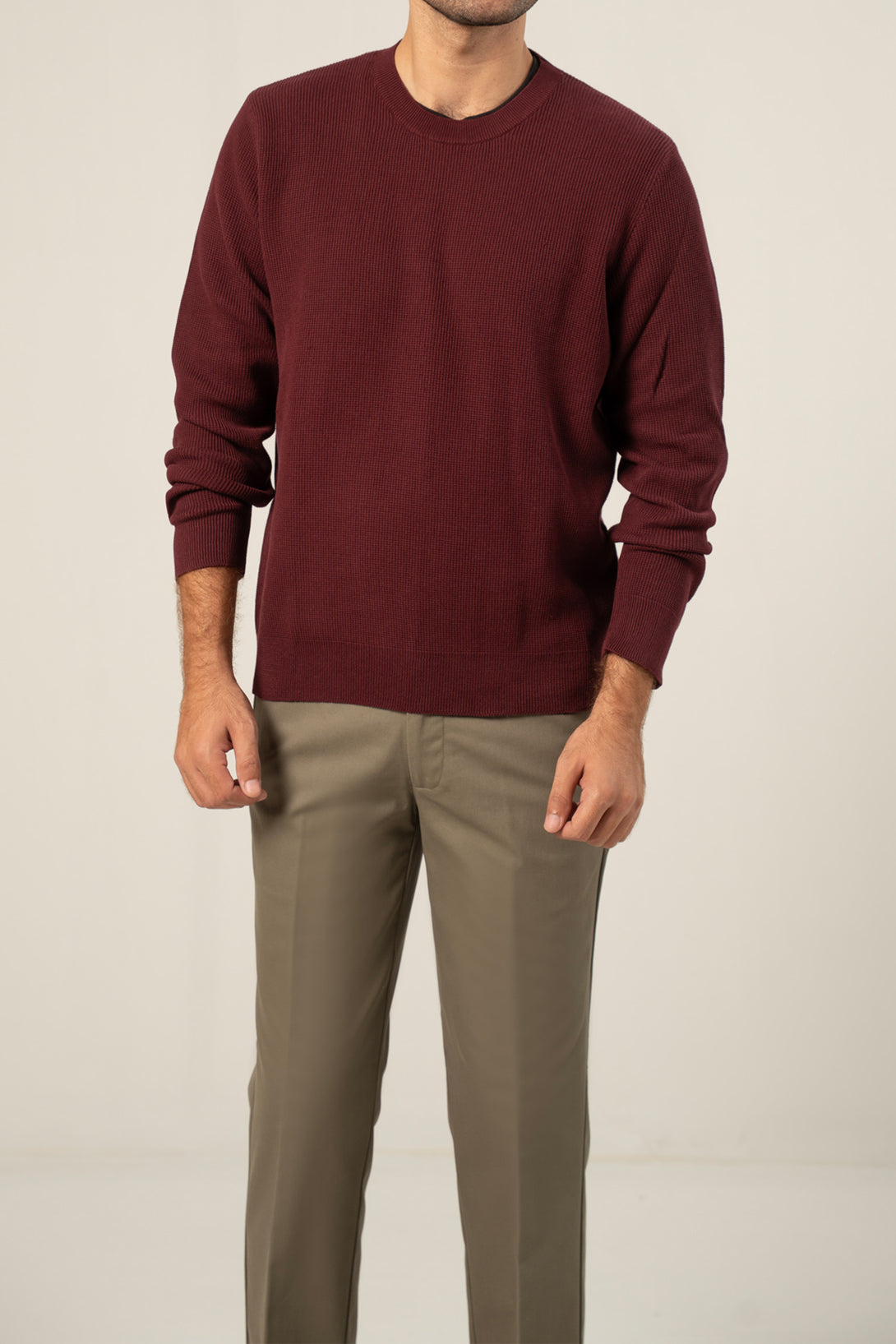 - Crew neck full sleeves textured sweater