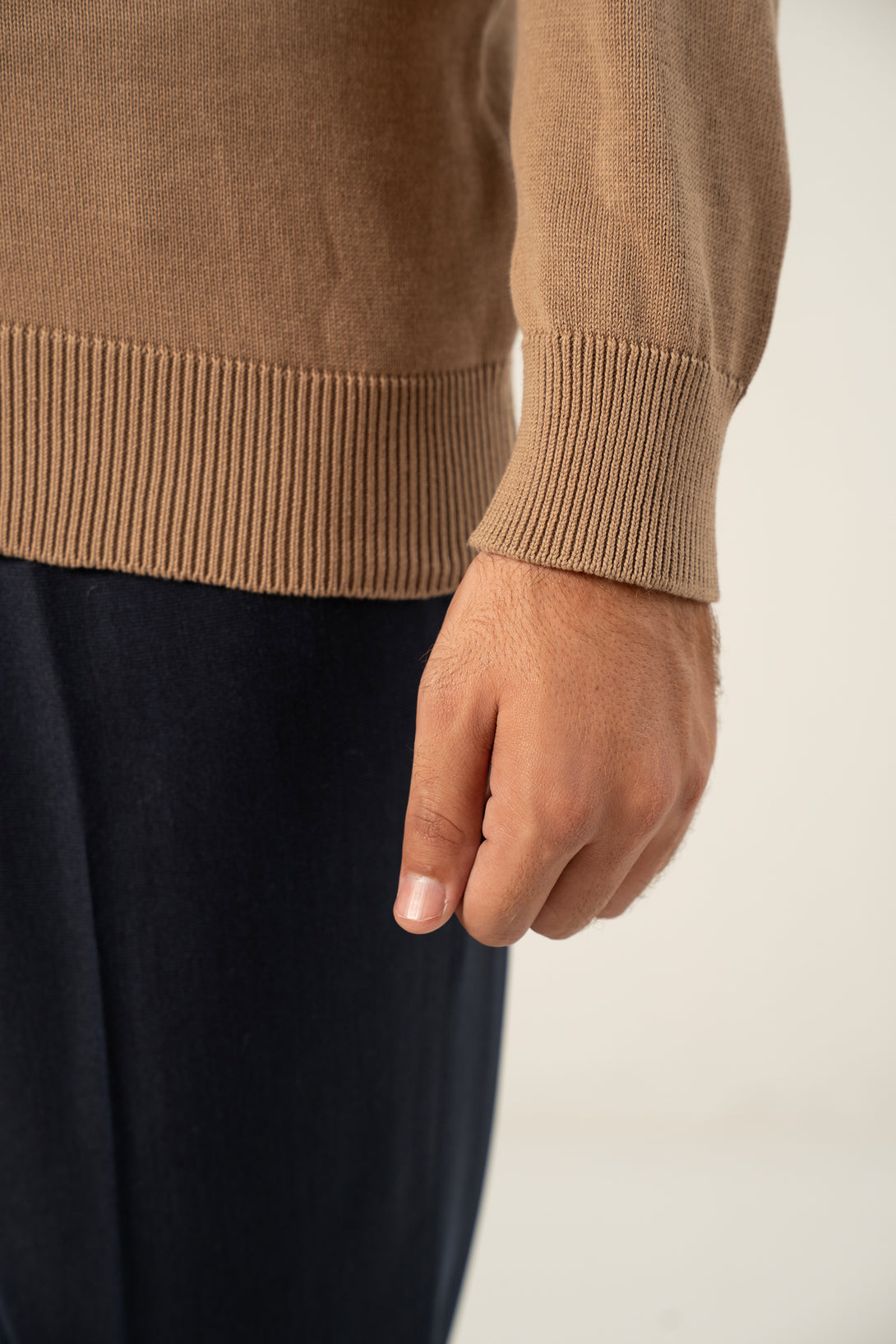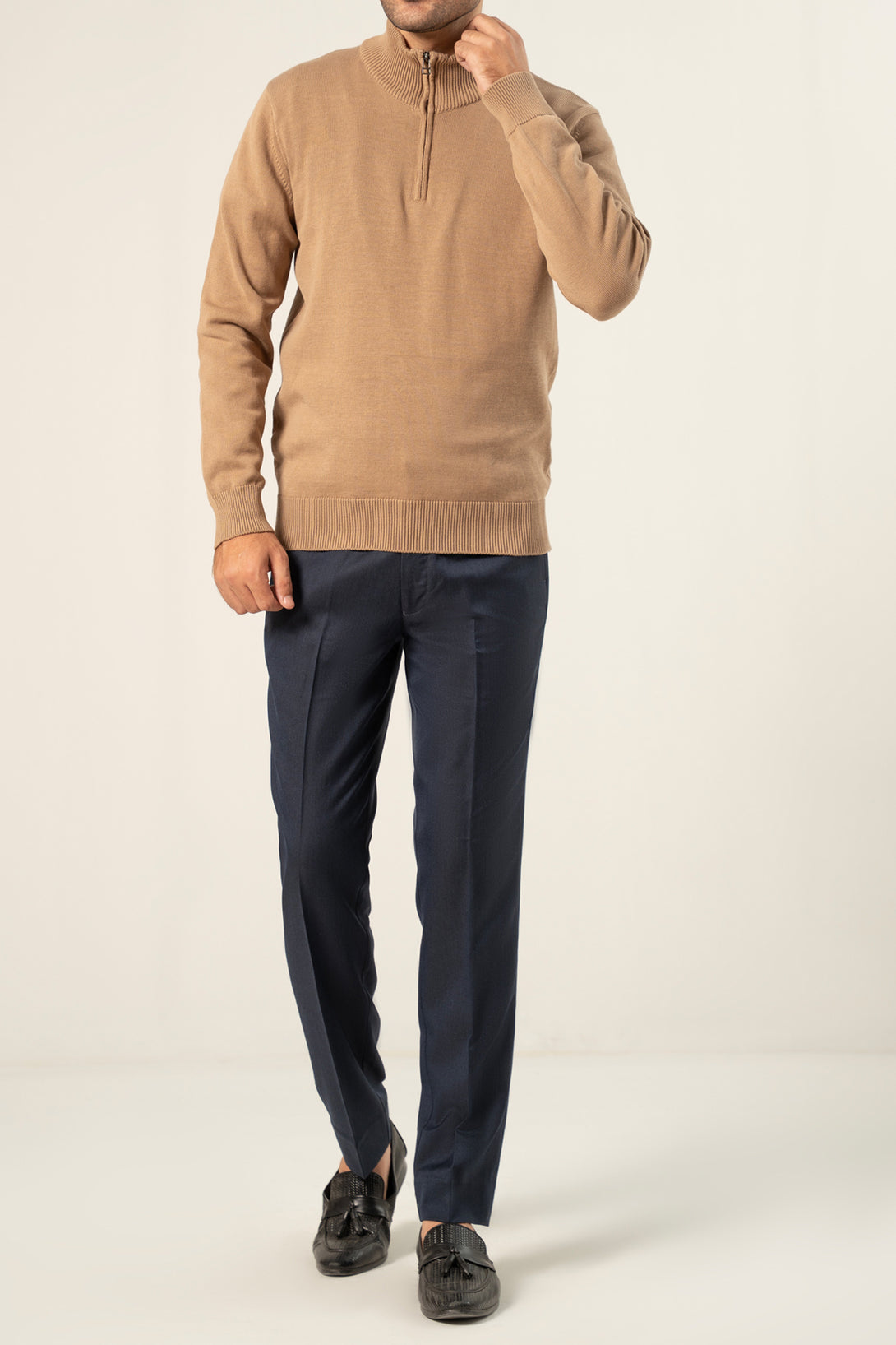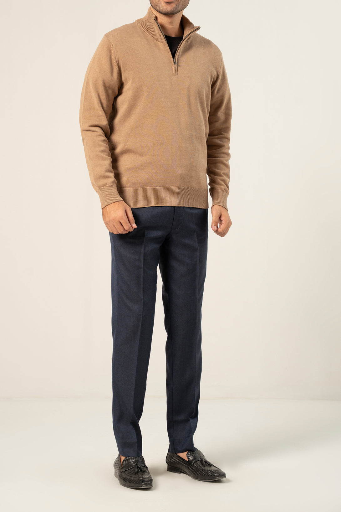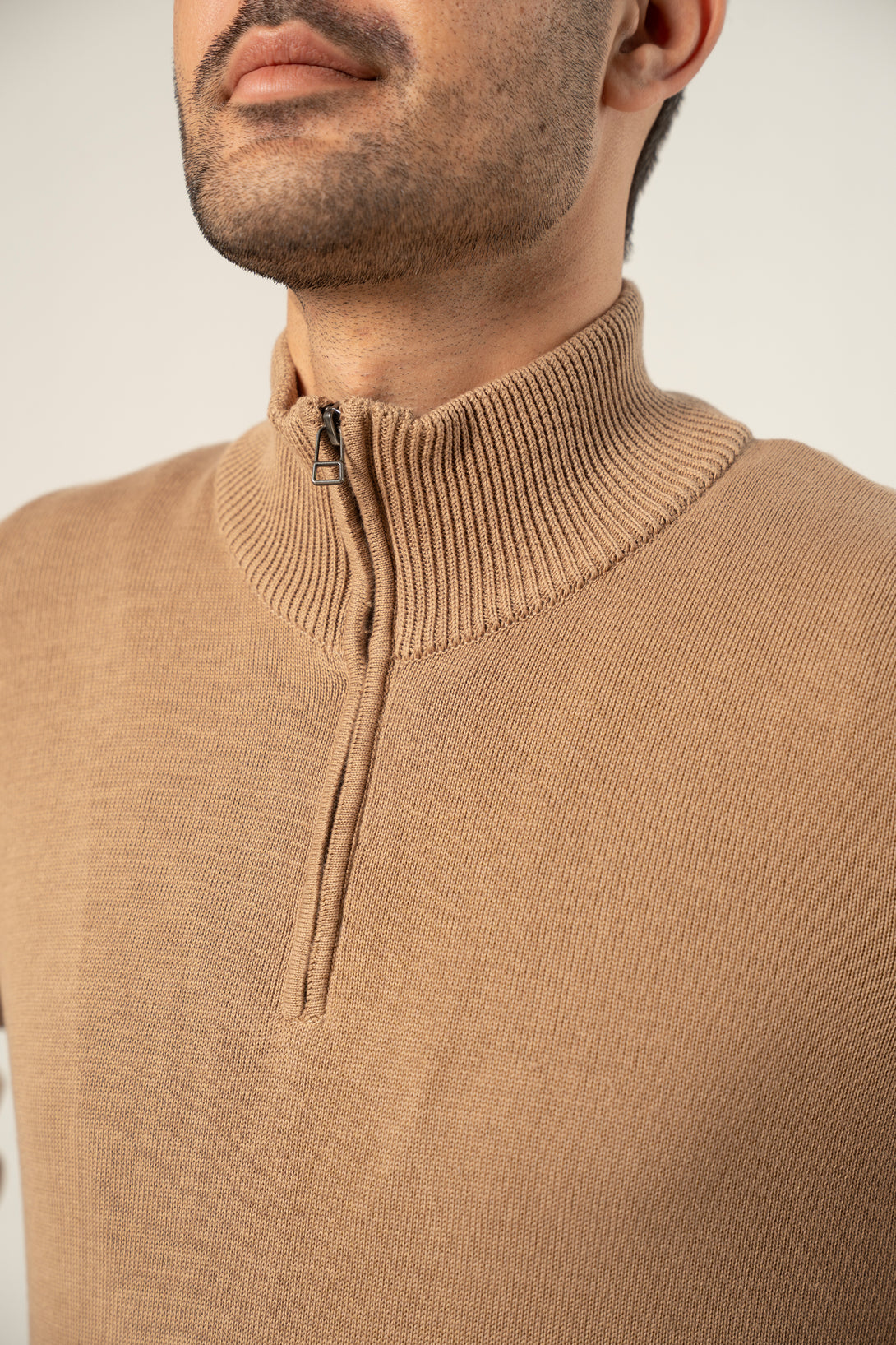 COTTON ZIPPER SWEATER - SAND