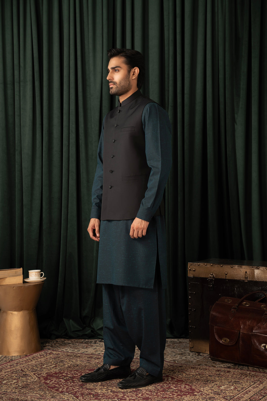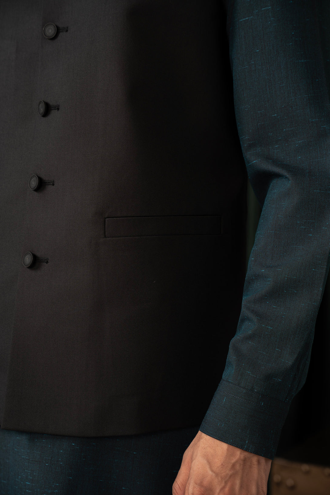Amplify your ethnic wear look with this basic wool waistcoat.