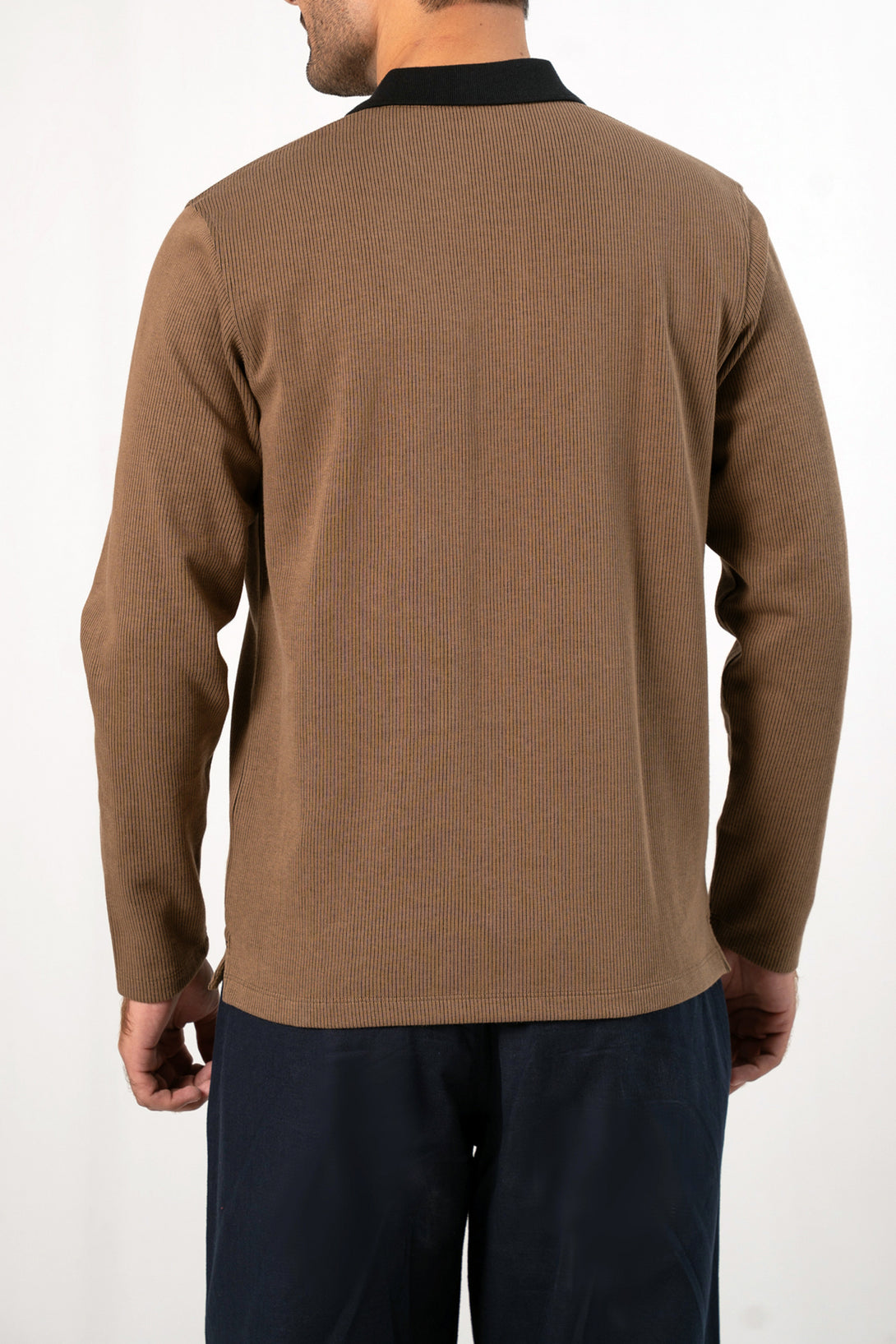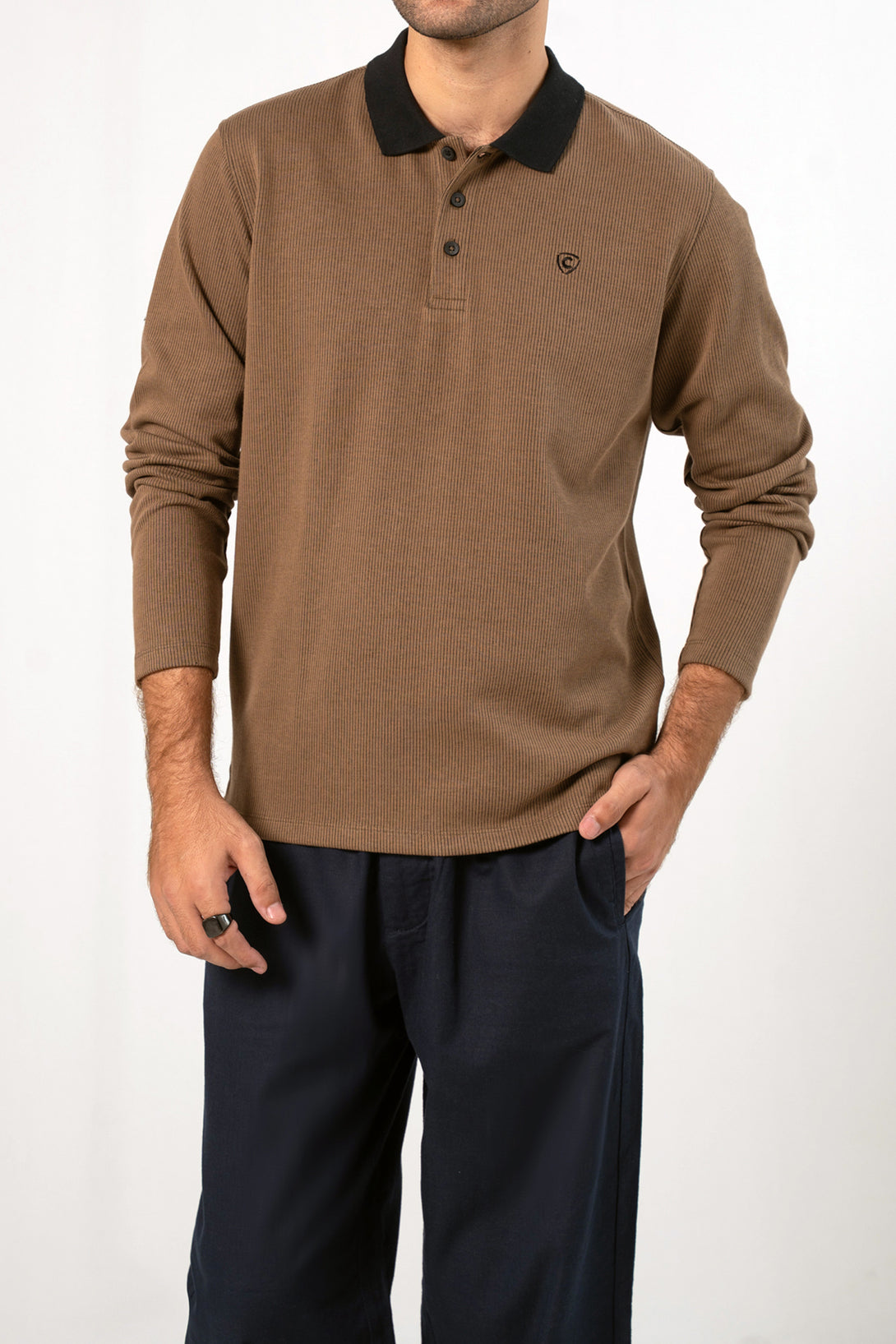 - Textured rib polo crafted from a soft cotton-poly blend for lasting comfort