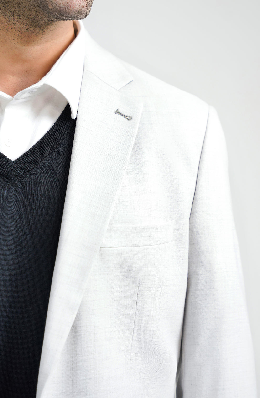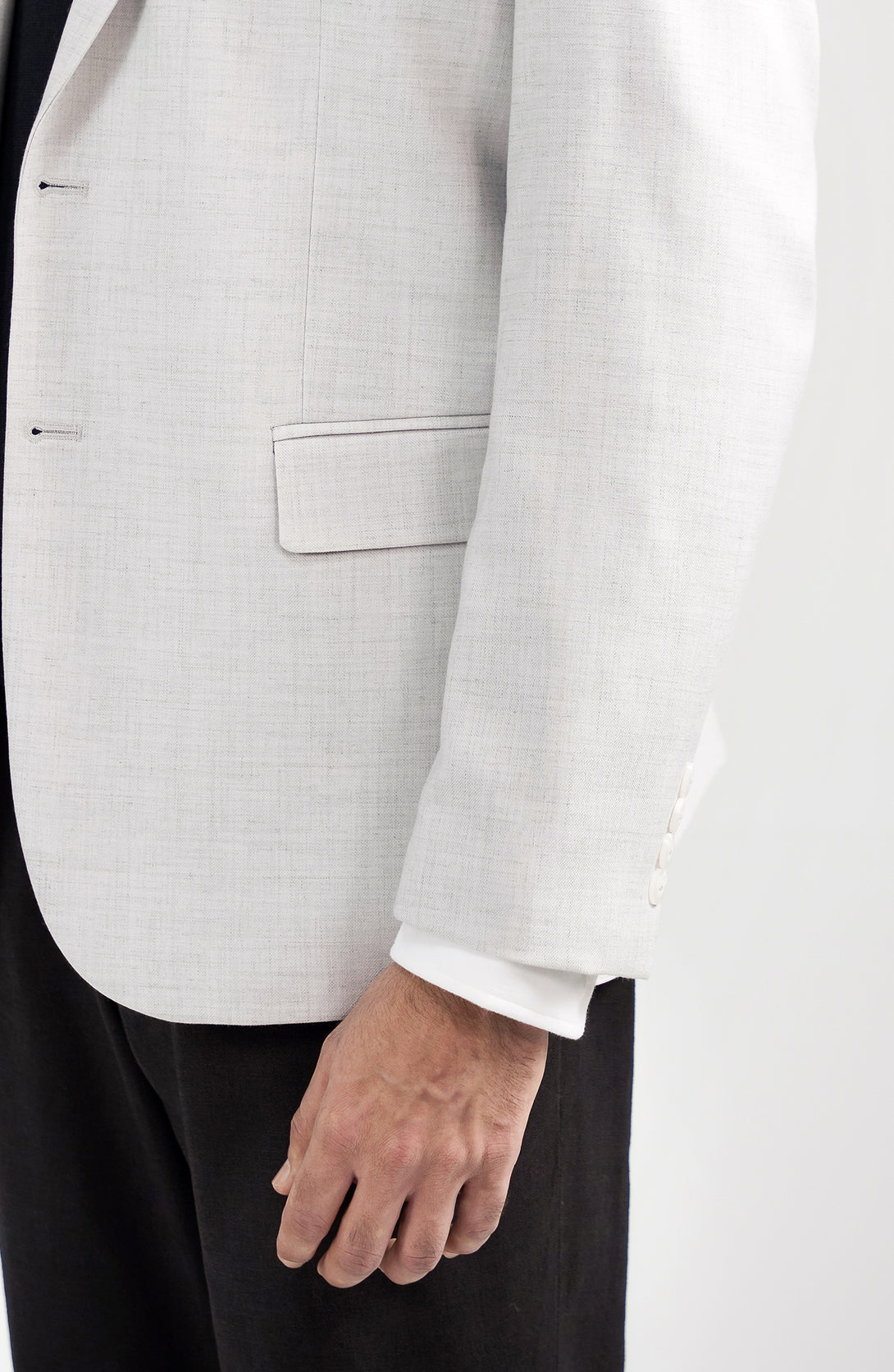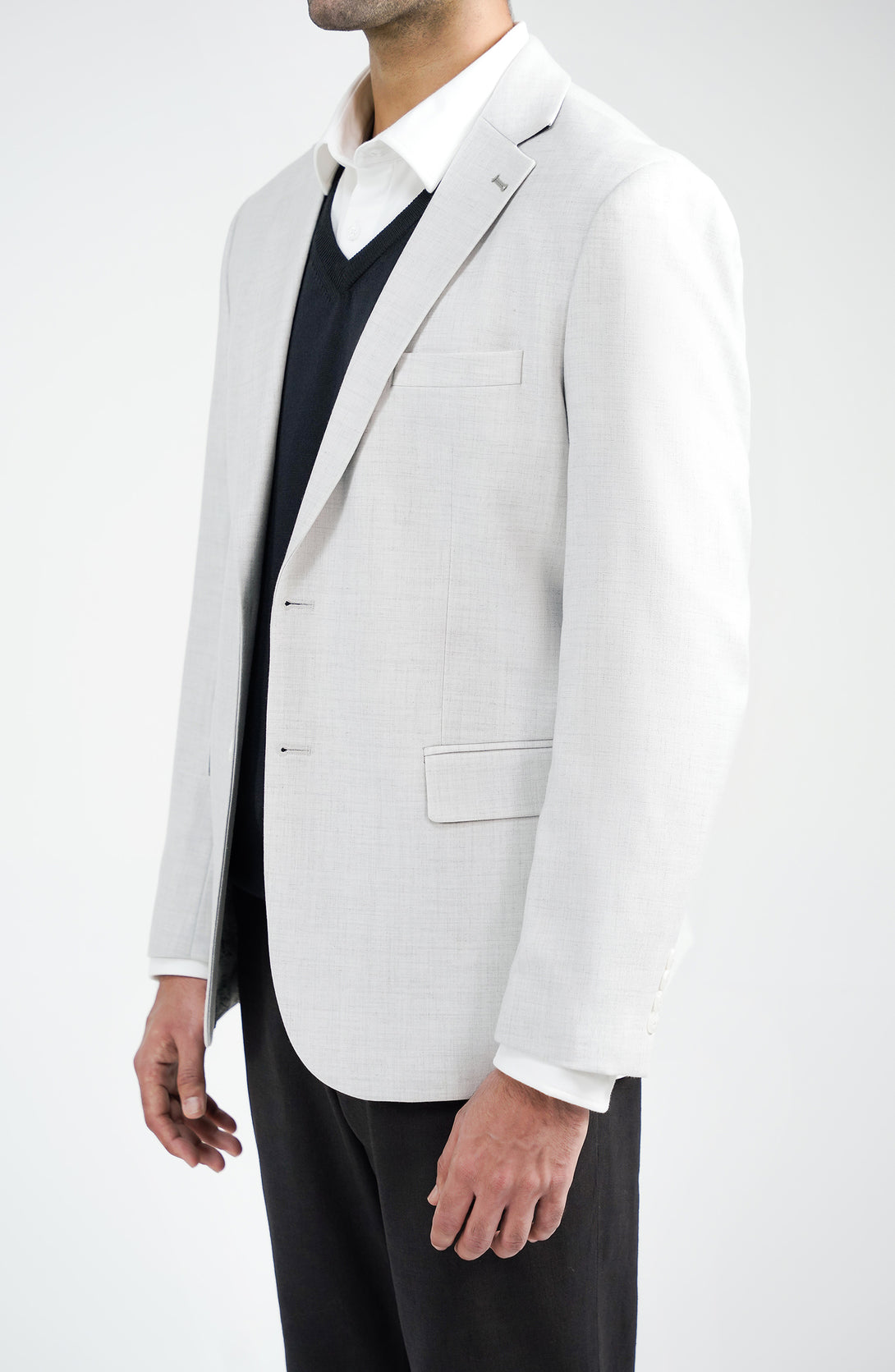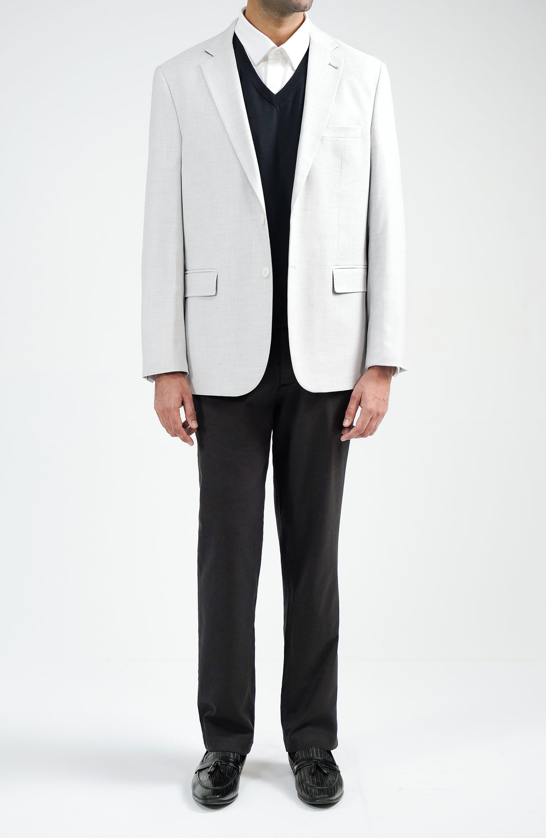 - Designed with a notched lapel, two-button closure, and flap pockets
