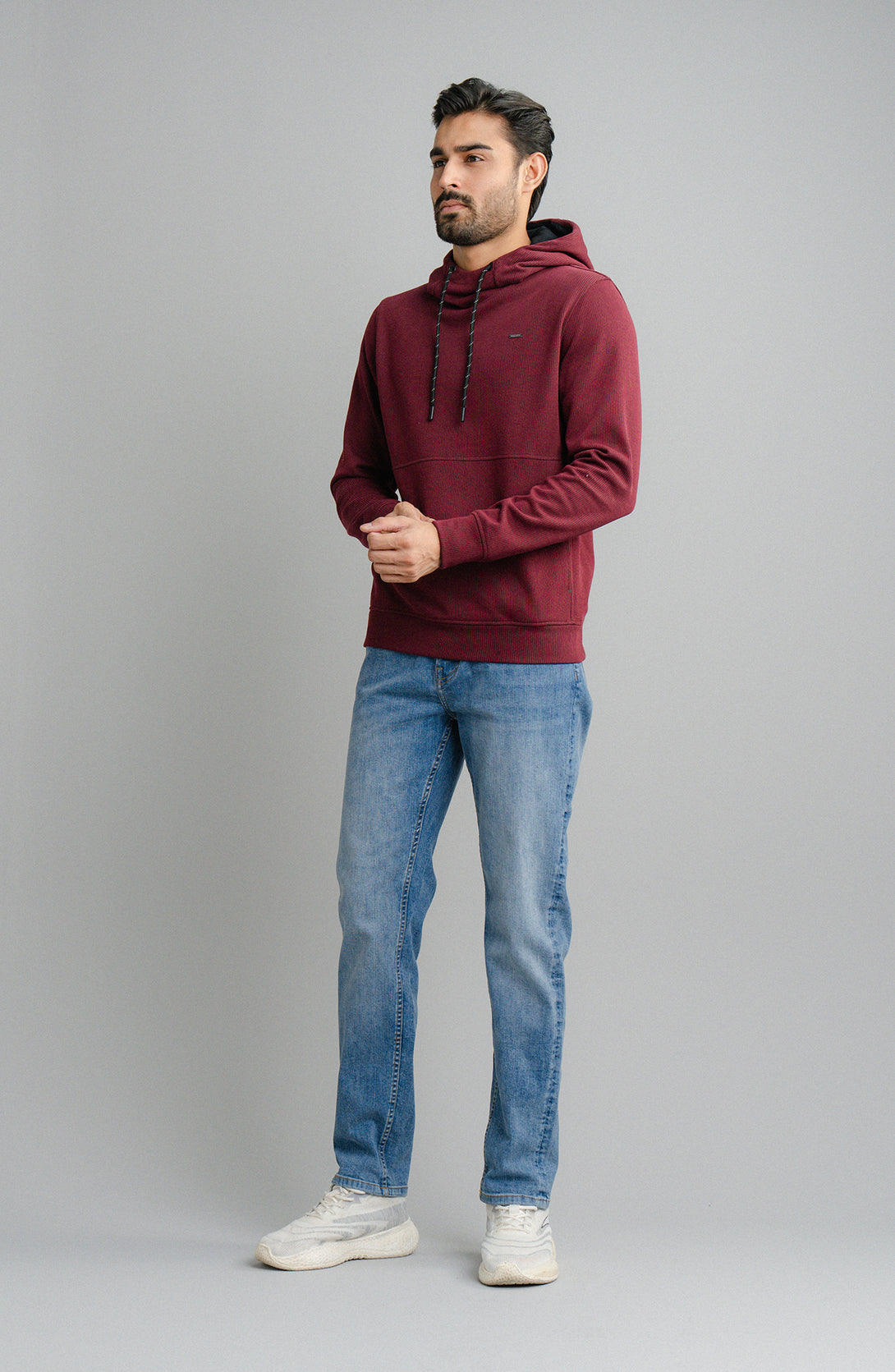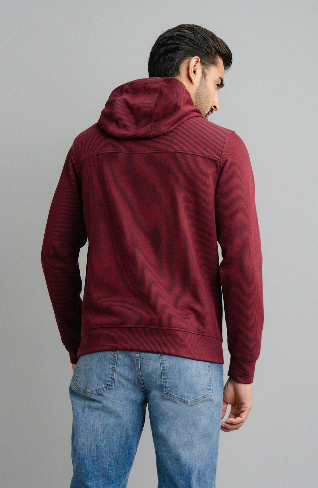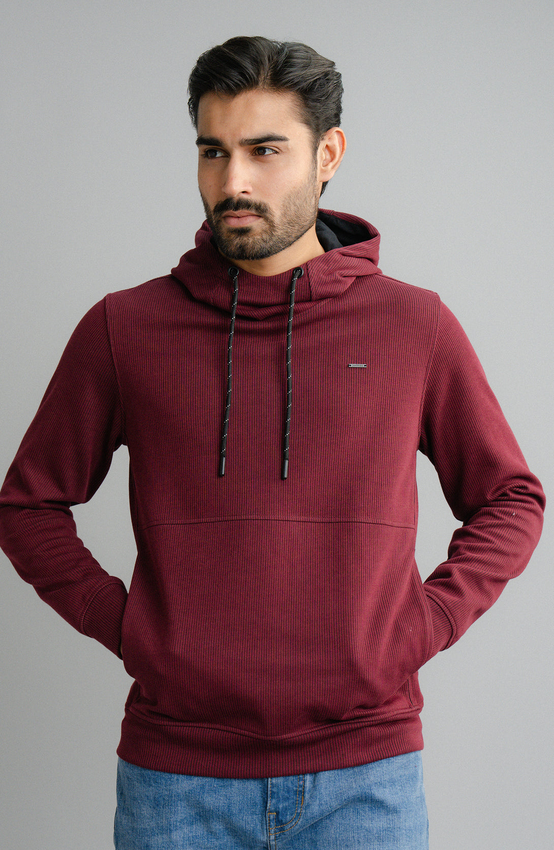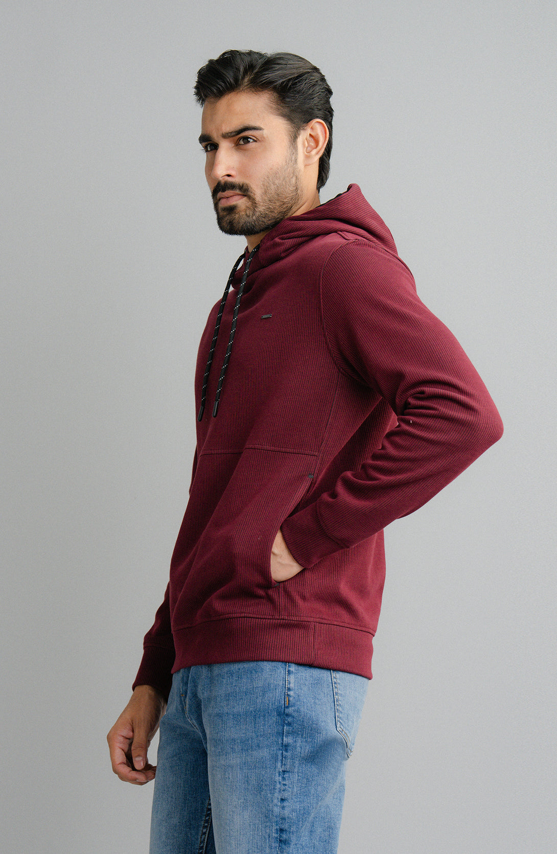 Immerse yourself in style and comfort with this essential hoodie pullover, made with flat back textured rib fabric. Featuring kangaro pockets and a regular fit, it’s a perfect addition to your casual winter outfits.