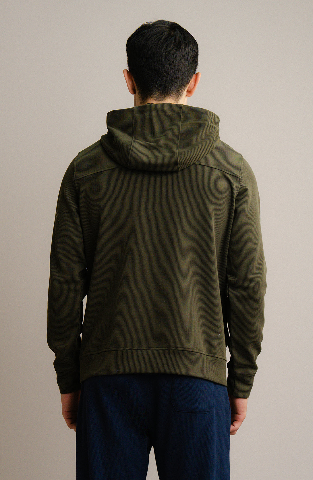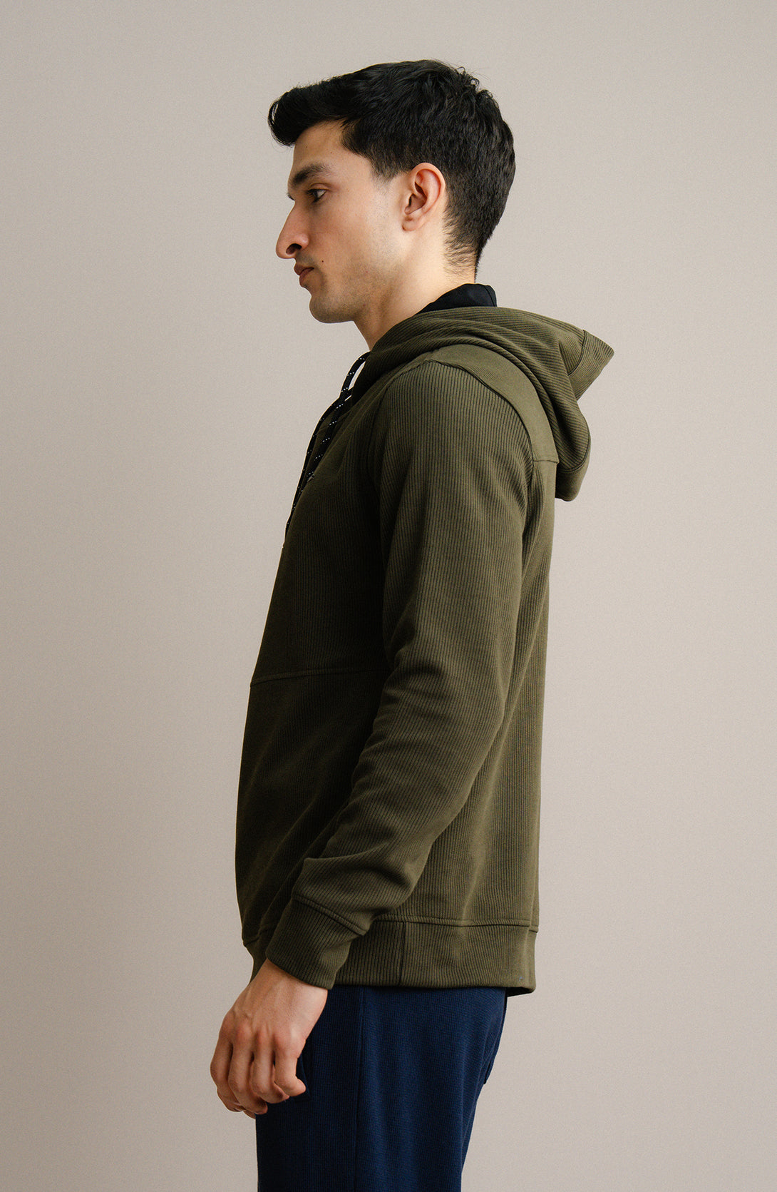 Immerse yourself in style and comfort with this essential hoodie pullover, made with flat back textured rib fabric. Featuring kangaro pockets and a regular fit, it’s a perfect addition to your casual winter outfits.